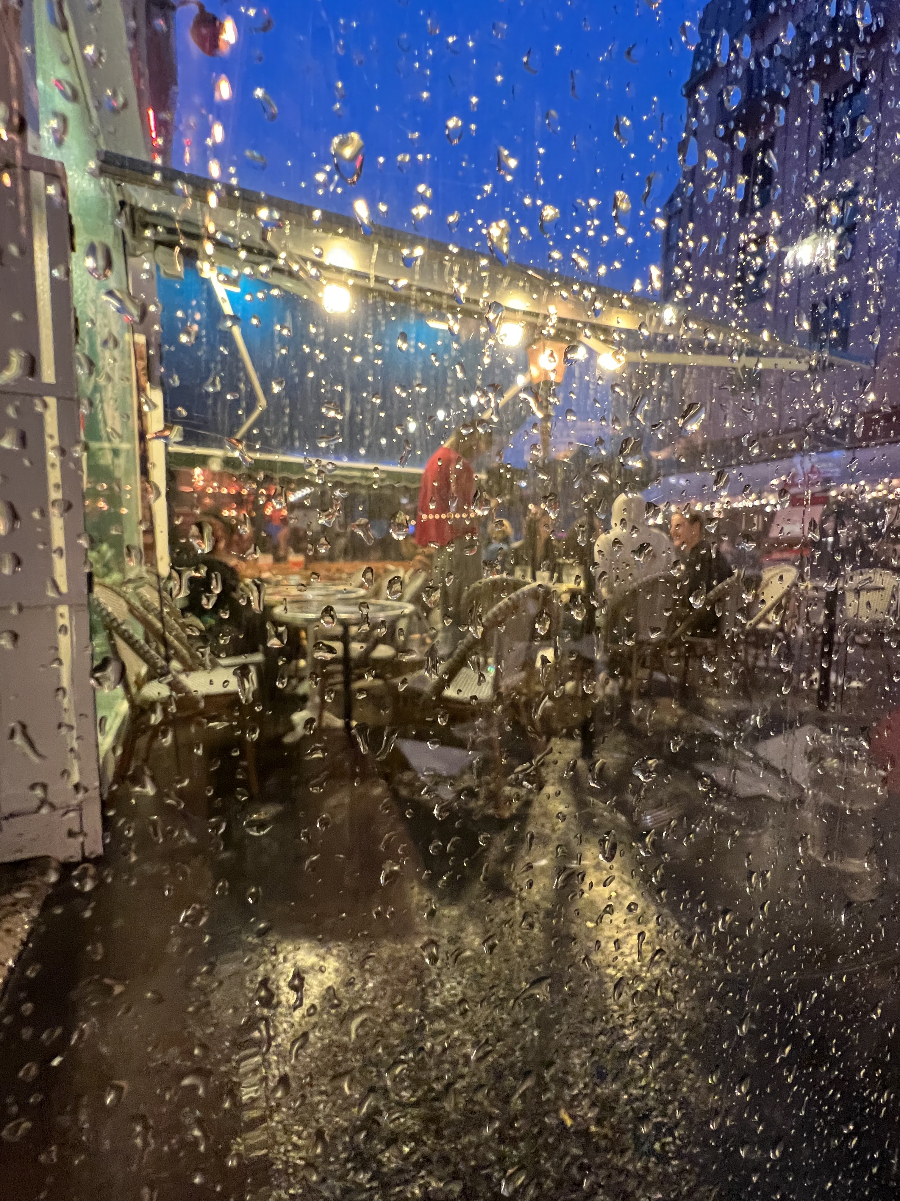 Nous avons mangé en terrasse et bien qu'il y ait énormément de passage autour de Chatelet nous n'avions pas du tout l'impression d'être envahi. La cuisine était bonne et le prix tout à fait correct (une vingtaine d'euros pour plat+dessert). Le service était agréable et plutôt rapide. Je recommande.