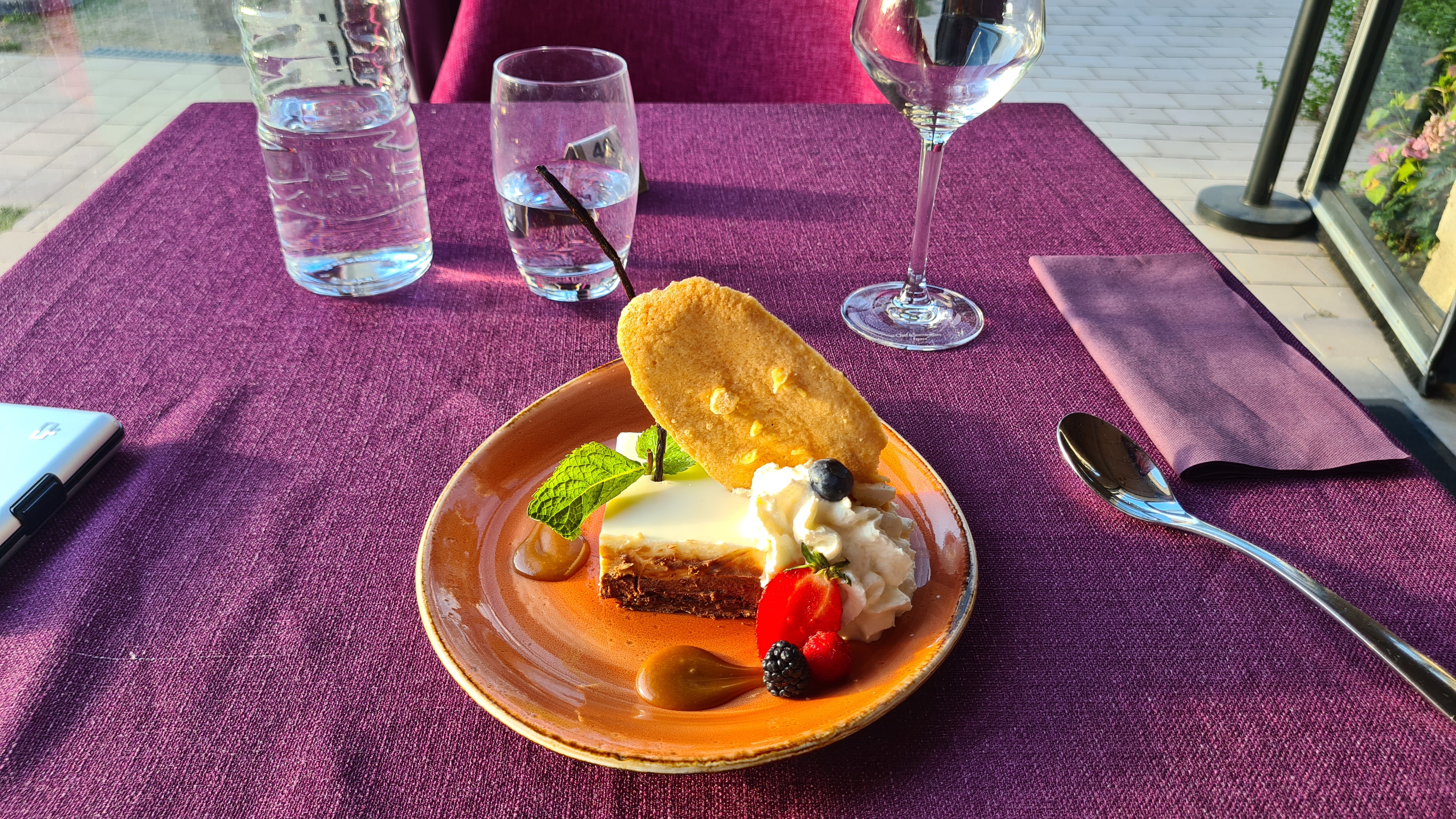 Excellent repas de l'entrée au dessert dans un cadre magnifique avec une vue sur le château. Personnel adorable. Un super moment. Merci.