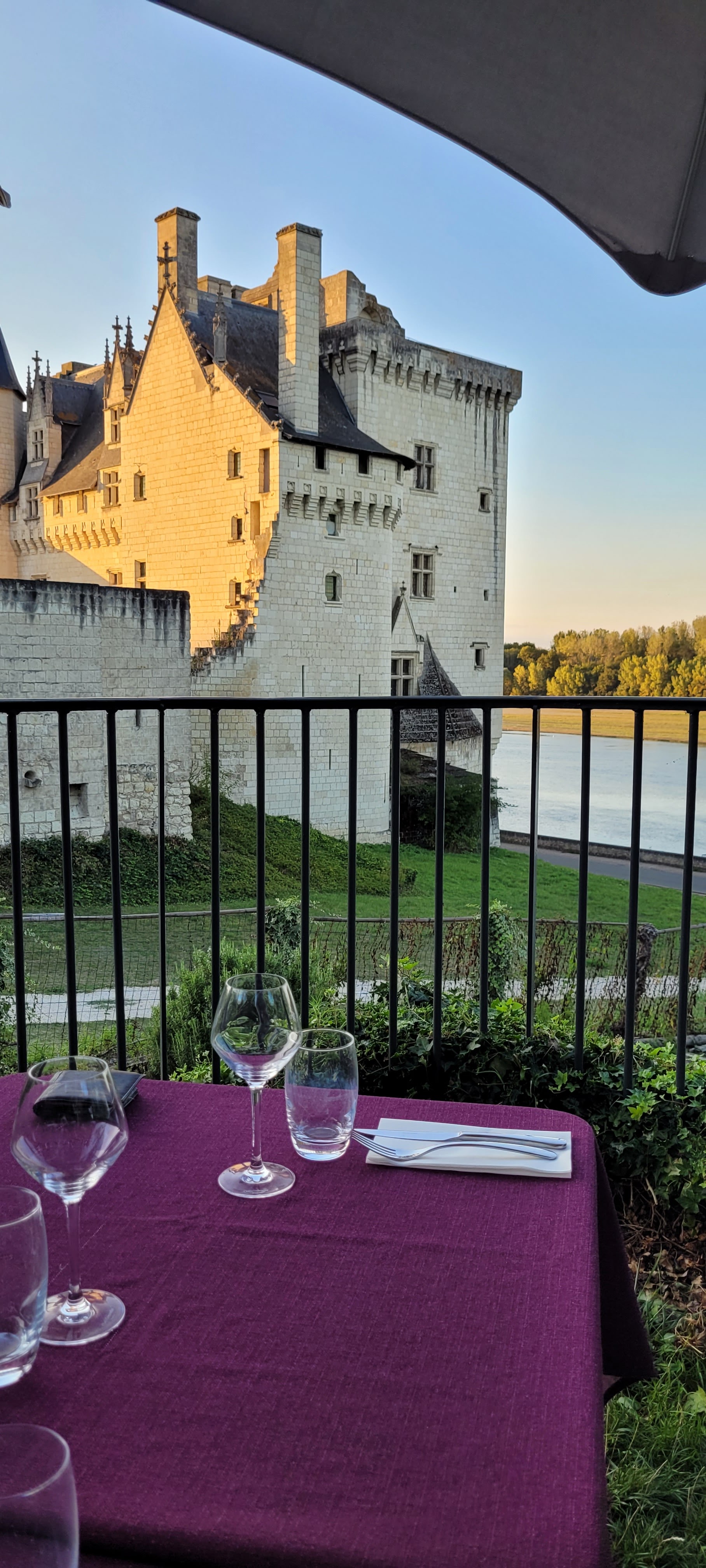 Cadre exceptionnel en extérieur vue sur le château et la Loire. Délicate attention un plaid est proposé pour les soirées fraîches. Belles présentations. J'y retournerai