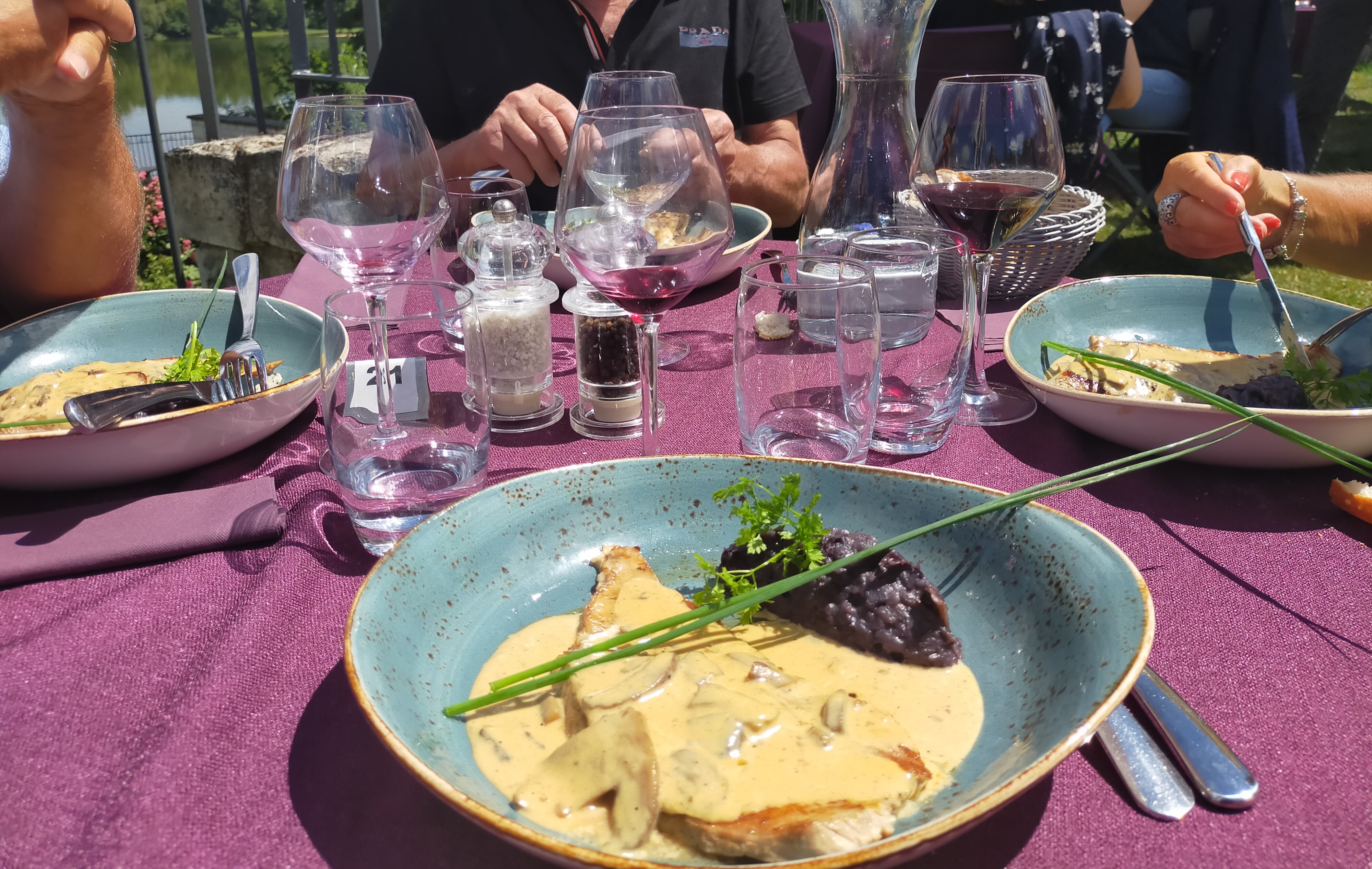 Bof ... Vue superbe ! Plats maisons mais service long. Vin qui arrive après les plats manque de cohérence. 3 ans qu'on vient et franchement plus sympa en tea room qu'en restaurant. Les cuisses de grenouille déception... cuit en friture à manger dans le noir car pas de lumière pour nous. Certains sont chanceux d'autres non. Pas très bonnes..