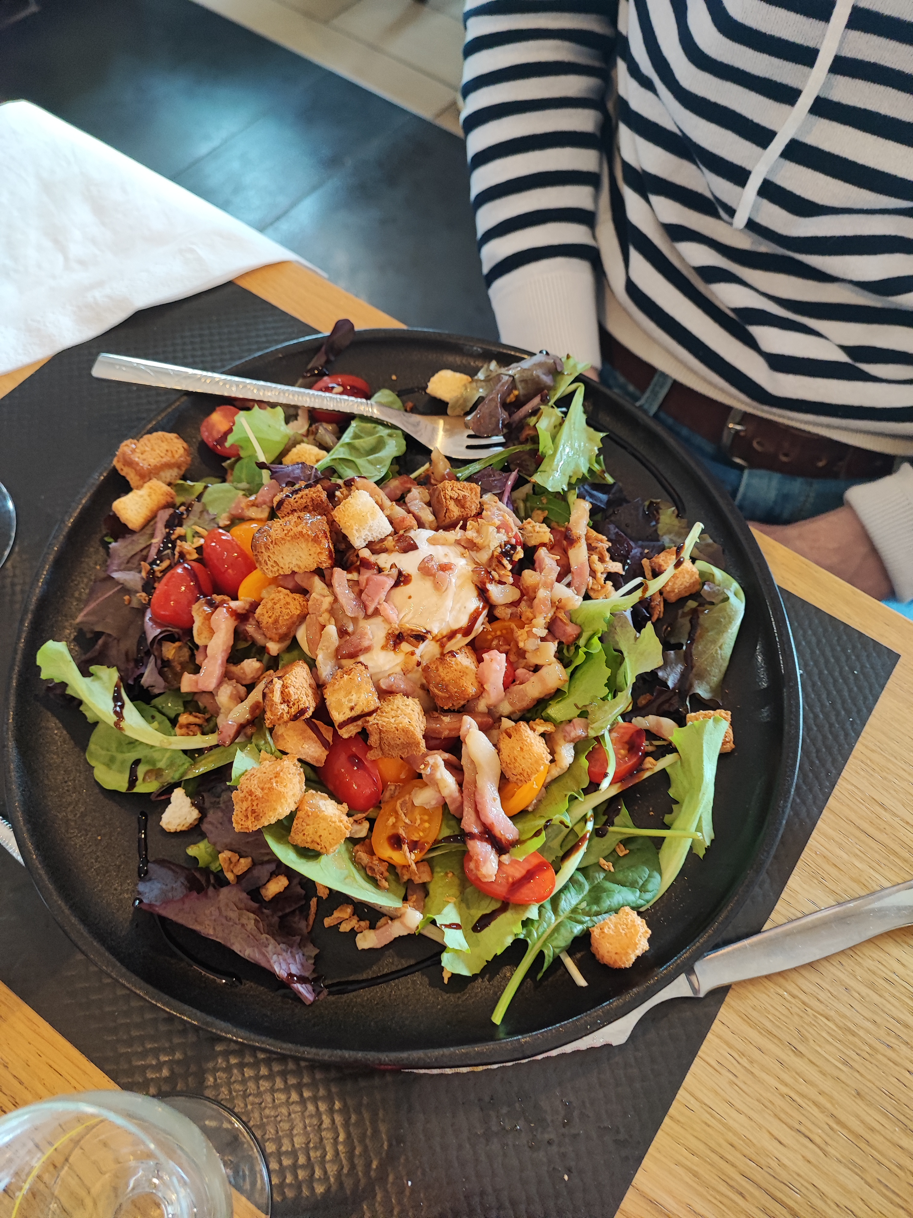 plat servis froid ,cela est dommage de ne pas métrise un service de plats chauds pour ma part je trouve cela chère en rapport a se qu on nous sert la serveuse est super sympathique et charmante avec un tres beau look