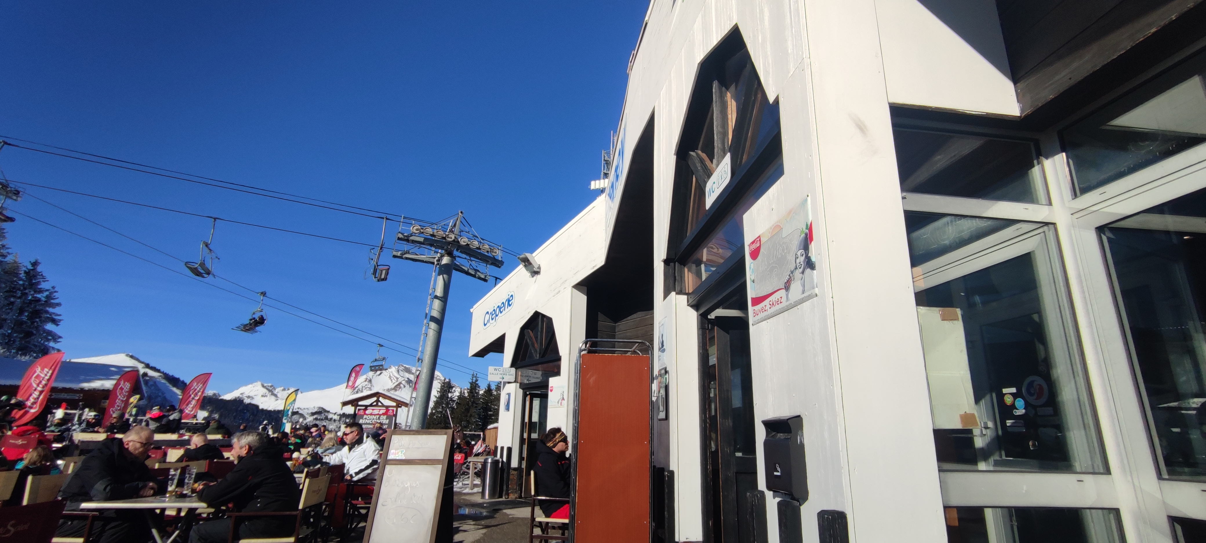 très bien situé sur les pistes, vous devez prendre la télécabine du Pleney et monter quelques mètres sur la pente pour y accéder, donc si vous ne faites pas de ski, assurez-vous simplement d'avoir des raquettes et faites attention aux skieurs. Très belle terrasse, bon choix de plats et de boissons et bonne humeur. Prix en moyenne pour l'emplacement. Très occupé un dimanche ensoleillé