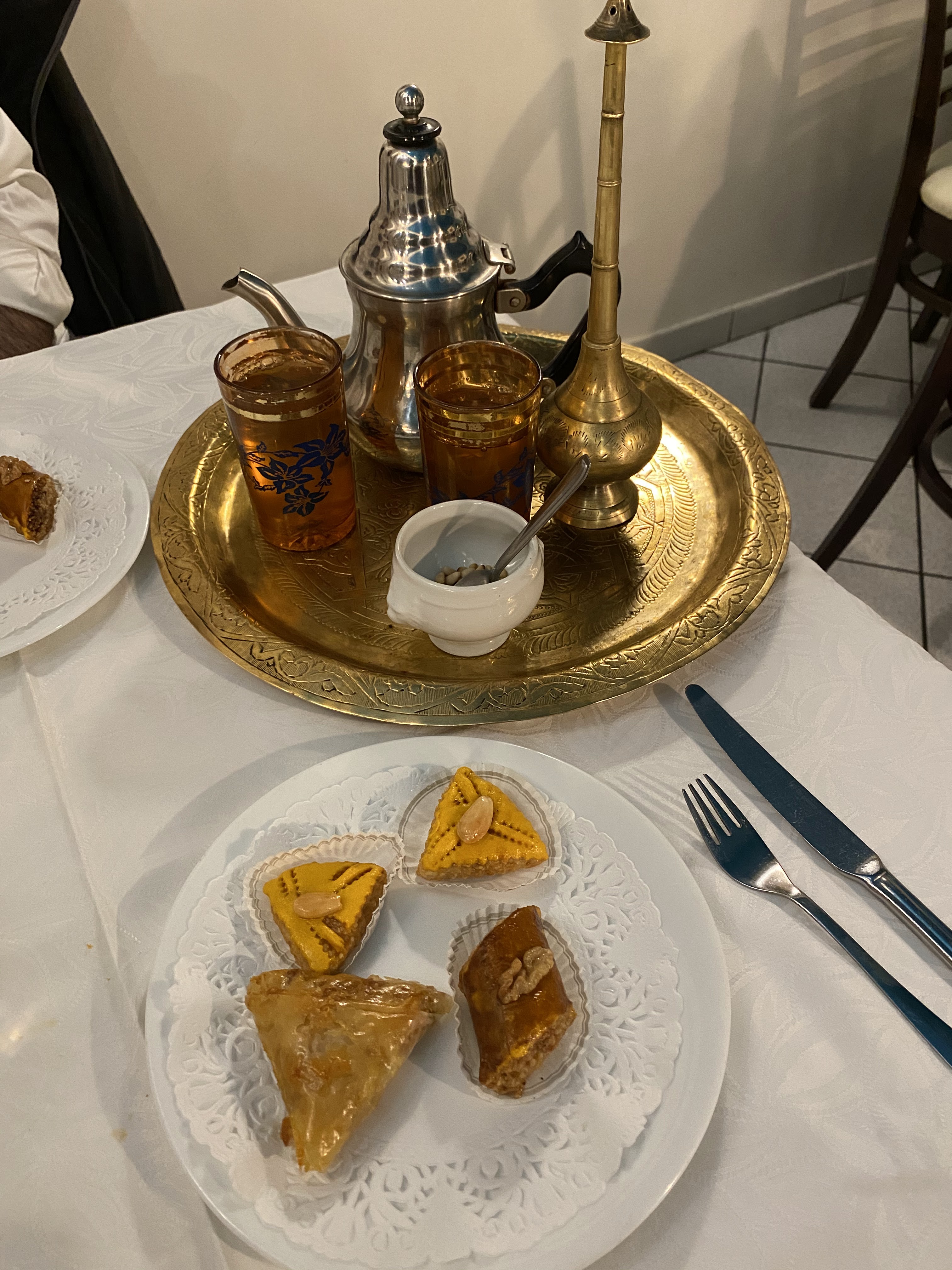 Excellente cuisine, équipe super sympathique, décoration tunisienne agréable 🥹 thé vert au pinion 🫶