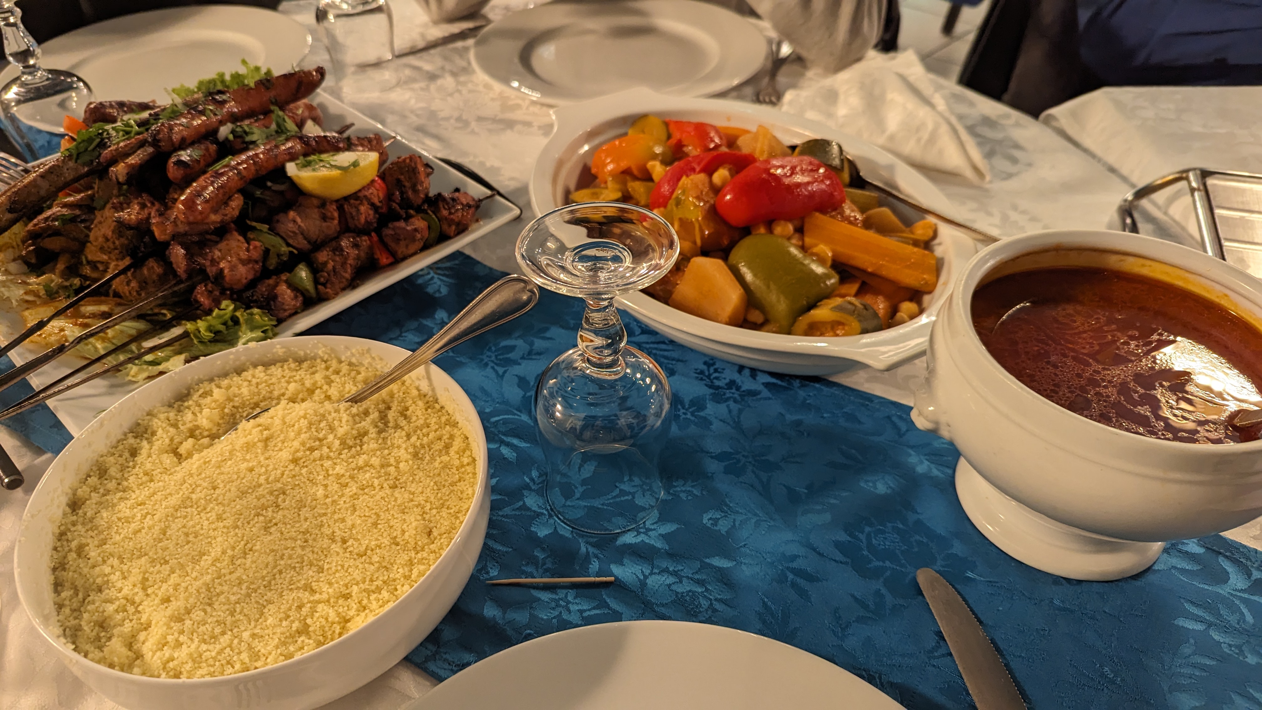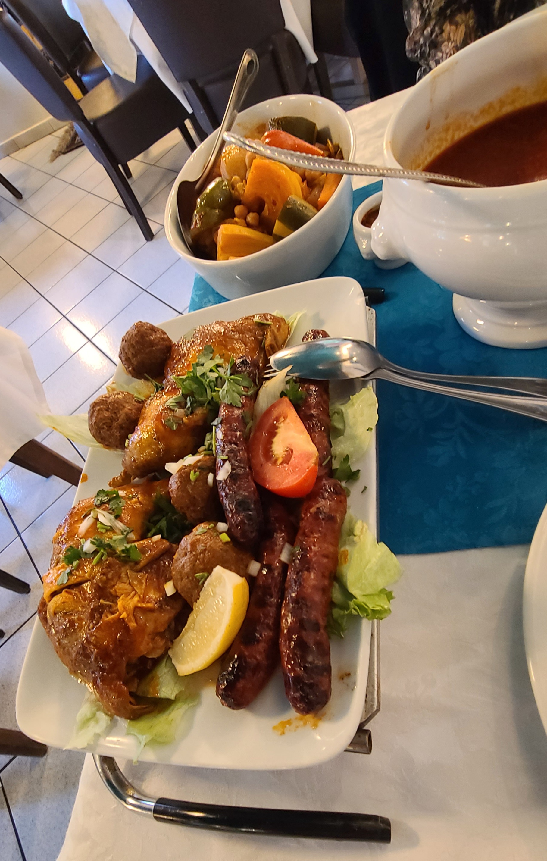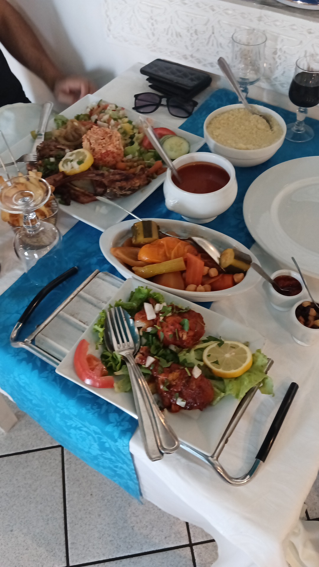 Nous avons pris un couscous 3 viandes, la quantité fut copieuse et le couscous très bon. Le cadre du restaurant est un peu vieillot. Le service fut trop rapide. A peine l'apéro arrivé, que les plats ont suivi.