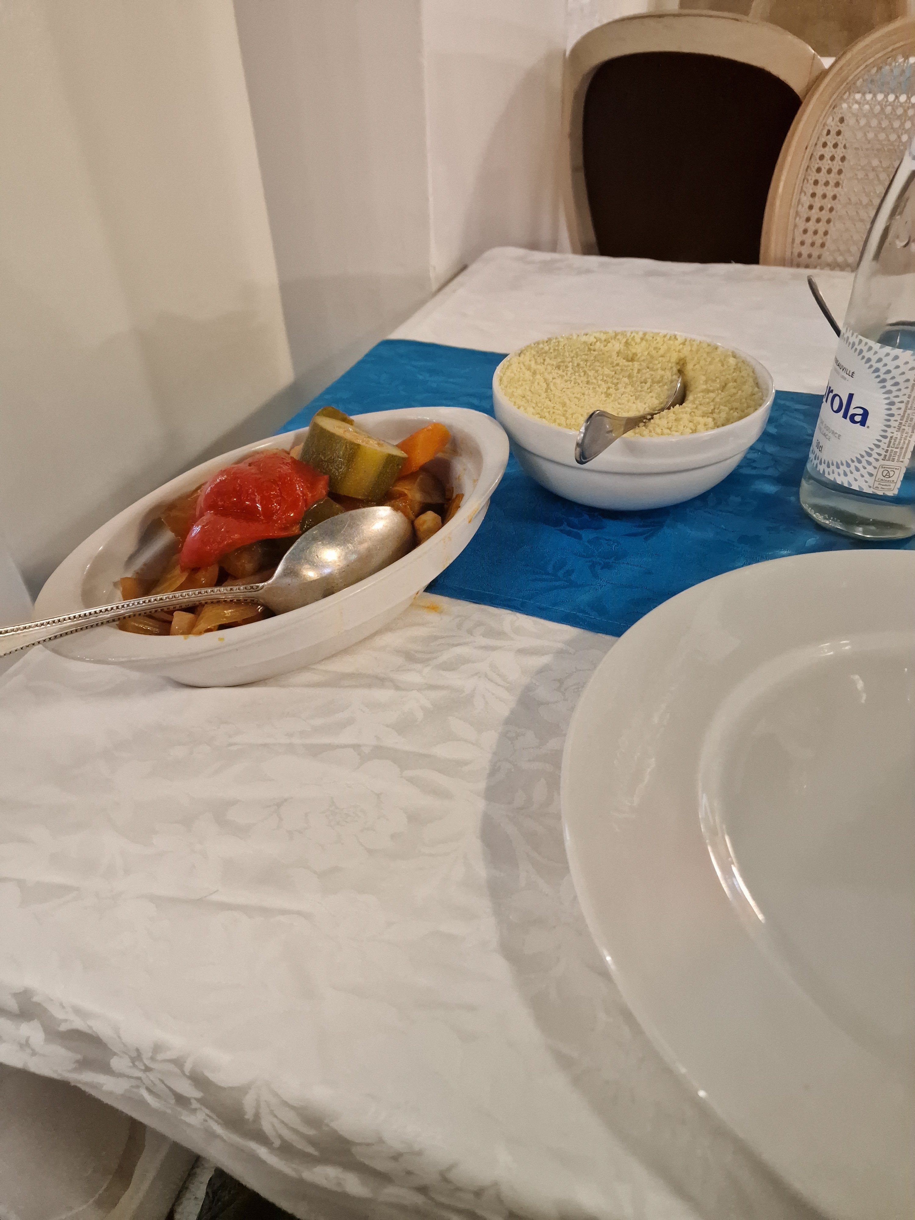 Nous nous sommes régalés avec le couscous. Très copieux. Mes filles qui n'aiment pas les légumes ont apprécié qu'ils ne soient pas servis dans le bouillon
