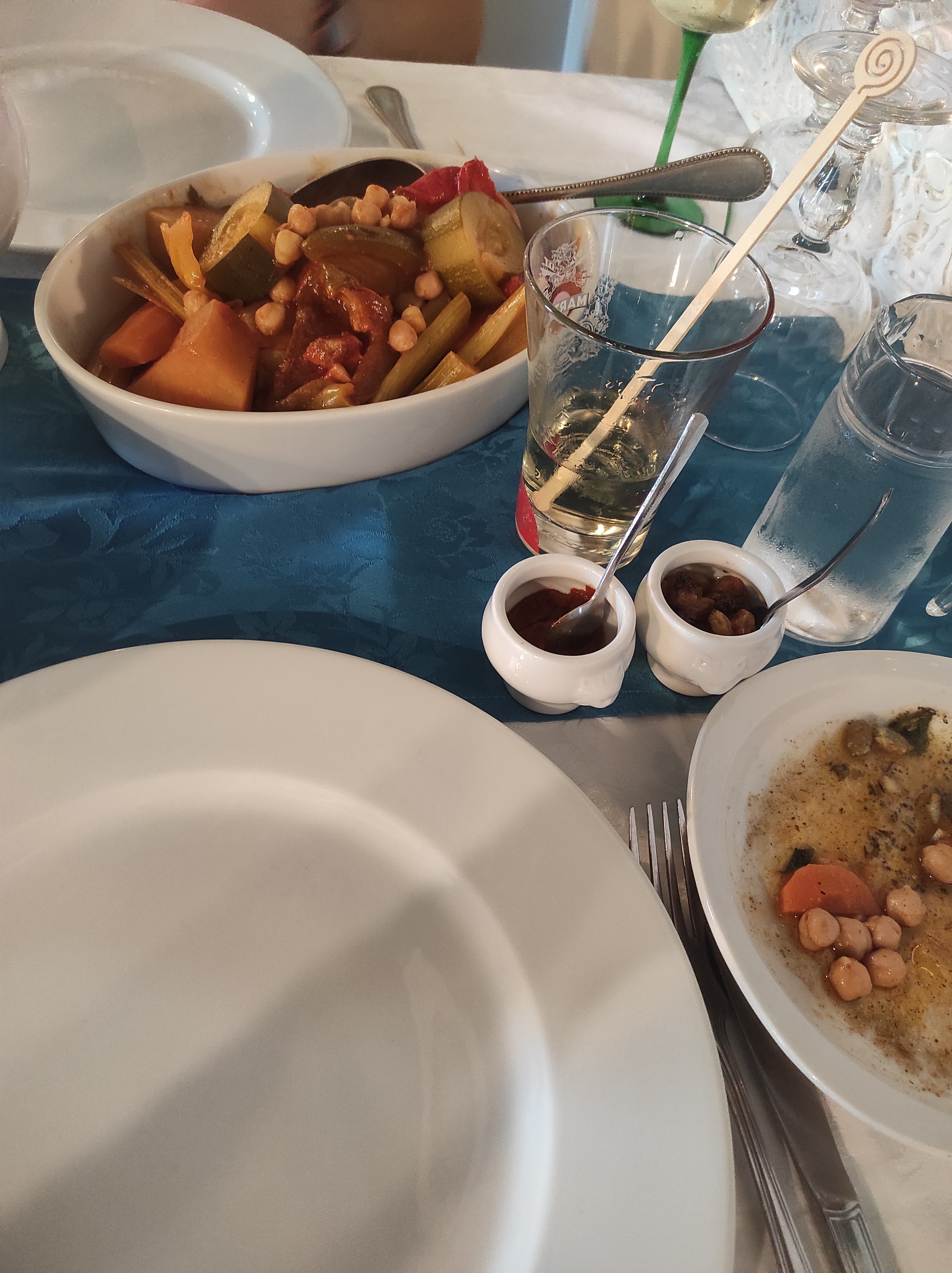 Belle déco Personnel très sympa Couscous bon ( mais manqué de courgettes pour nous ) même si on nous à ramener un rab de légumes 😊 bien servi et thé à la menthe excellent 👍