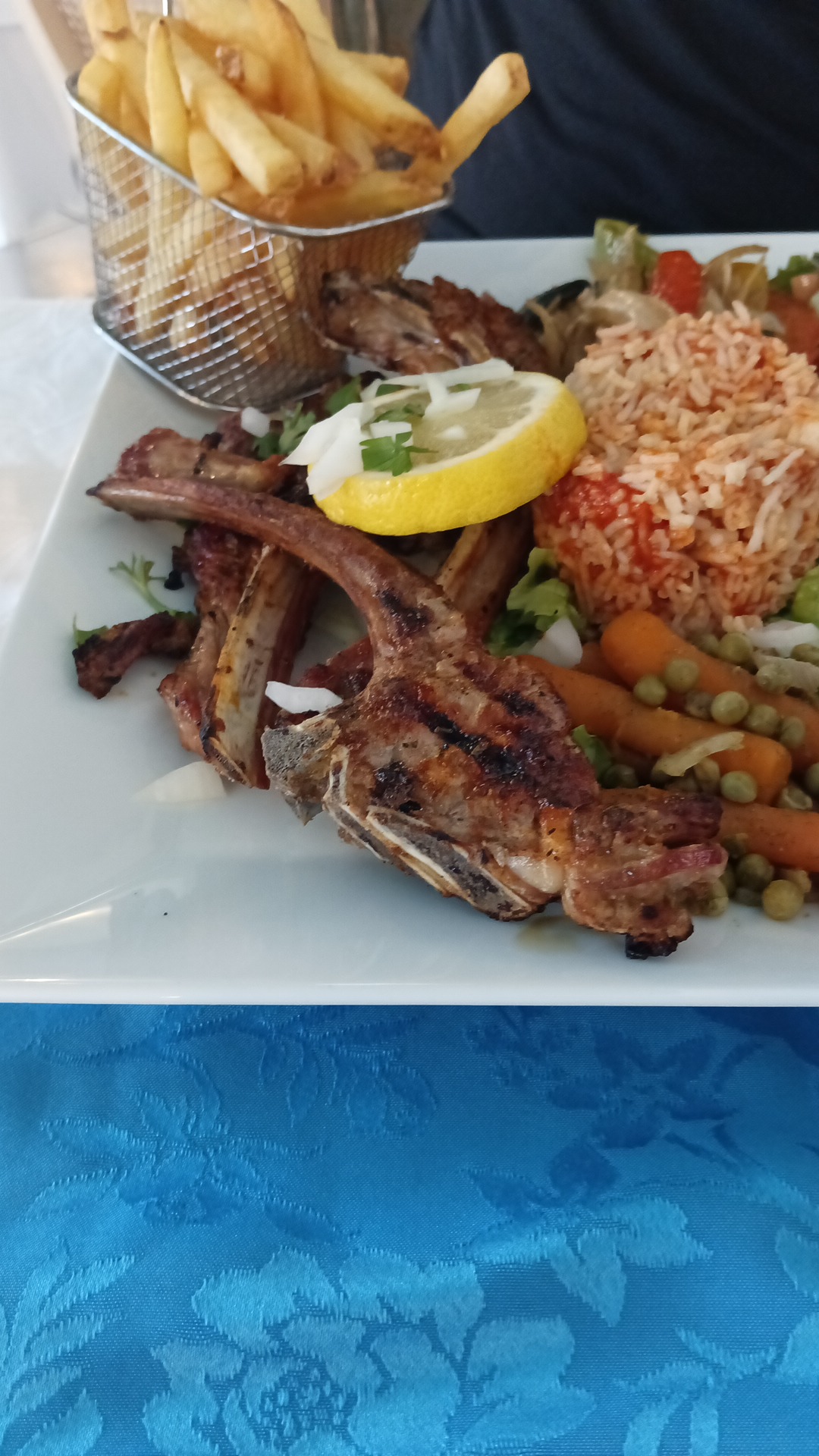 Nous sommes venus déguster un superbe couscous pour l'anniversaire de l'aîné de mes enfants d'ailleurs leur menu pour enfants est très sympathique et copieux j'ai testé leur mix grille je vous conseille de ne pas prendre les frites mais de prendre les autres accompagnement je me suis régalé j'avais un peu de tout