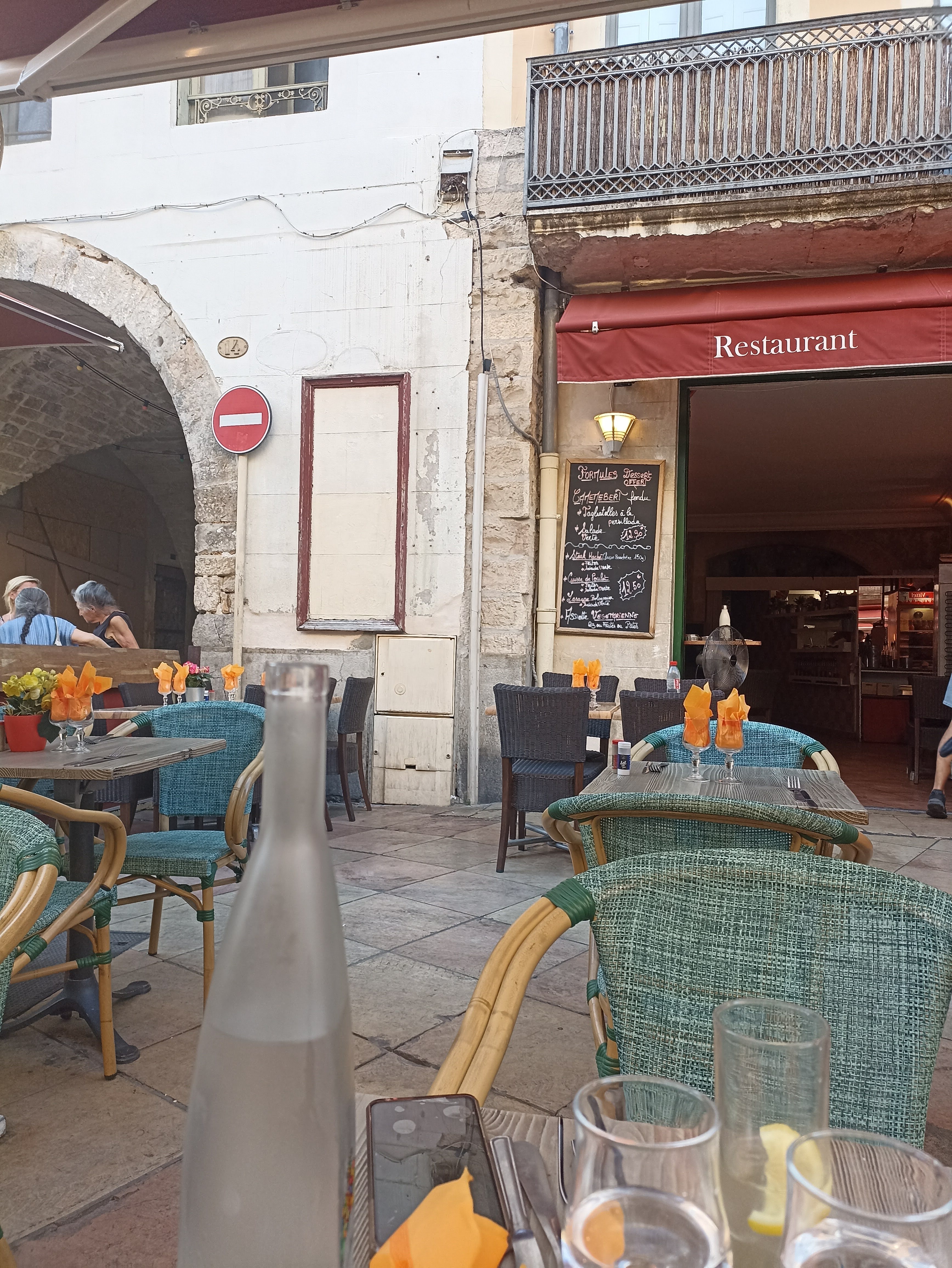 En visite à Nîmes, nous nous sommes dirigés vers ce restaurant qui avait l'air chaleureux. L'accueil était très agréable (serveuse gentille et souriante) et la cuisine convenable sur le moment. Cependant, nous avons tous été malades dans l'après midi suivant le repas, de manière évidente à cause du déjeuner consommé dans ce restaurant, ce qui a un peu gâché notre séjour à Nîmes...