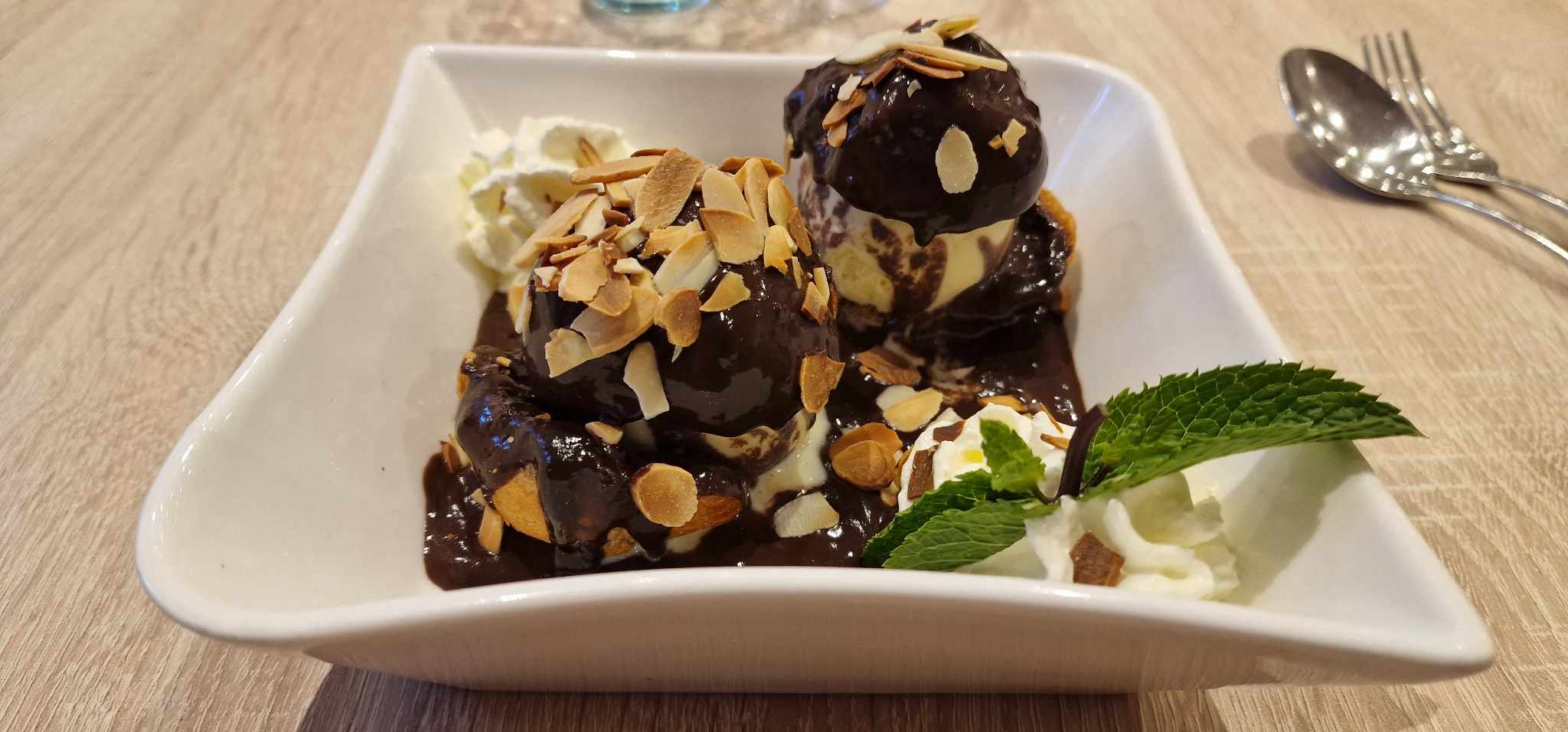Tout était parfait serveur et serveuses aux petits soins et adorables cuisine excellente et très copieuse merci pour se moment qui était juste parfait je recommande vous pouvez y aller les yeux fermés !