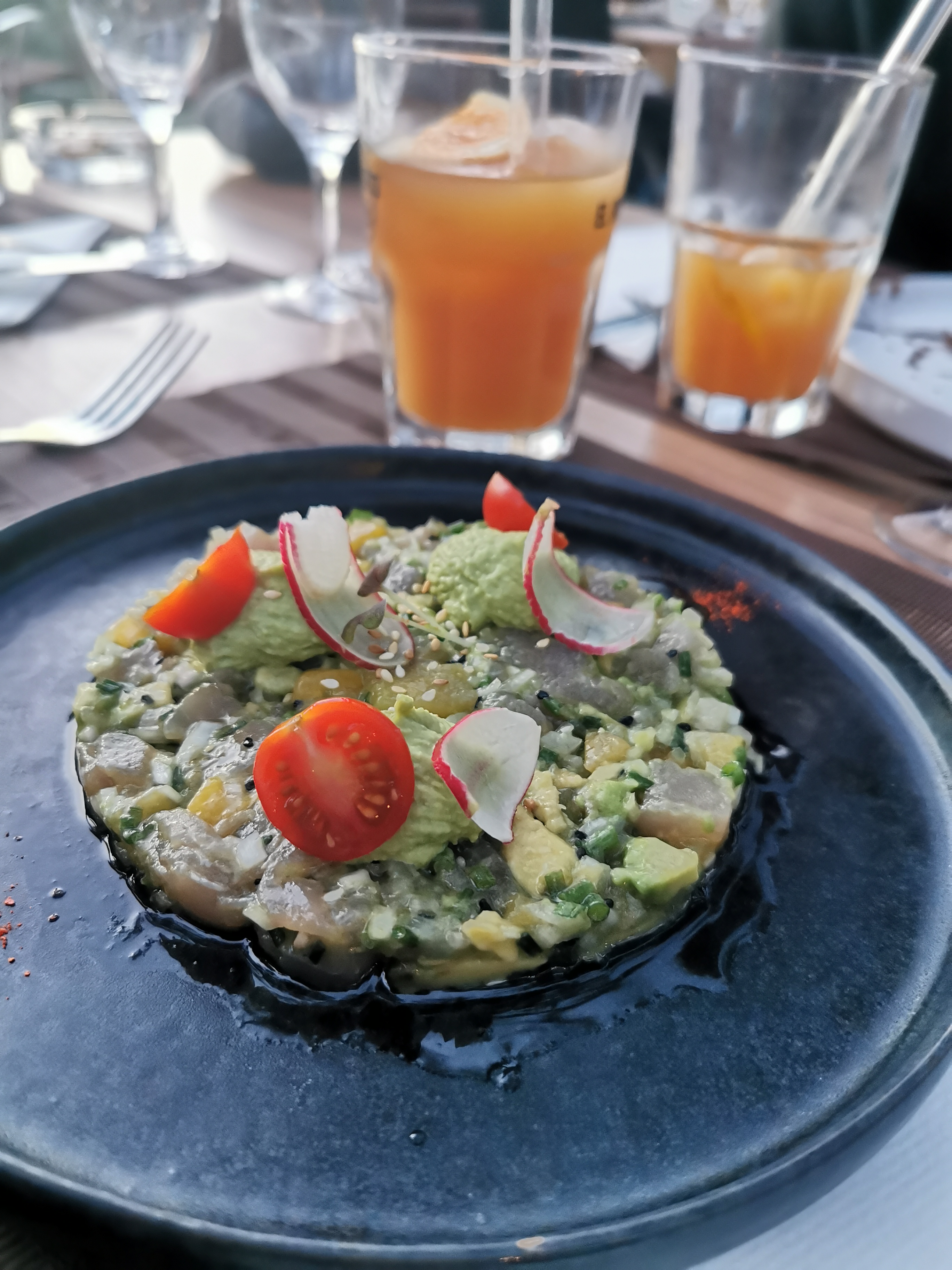 OK la vue est magnifique, les huîtres délicieuses, le sushi de thon excellent normal aucun art de la cuisine. Pour le reste un service très long entre l'entrée et le plat principal et surtout ce canard sur tartine, une hérésie: pain dur, peau de canard à volonté avec des frites avec 90% de graisse et 10% de patate.