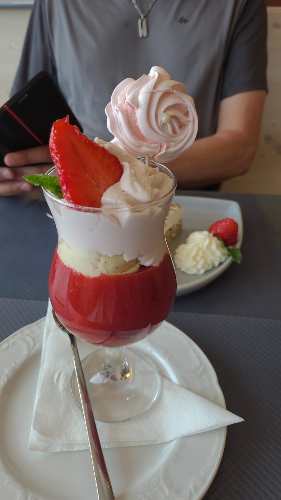 Nous avons passé un très bon moment ! Belle vue, très bonne glace, très bonne tarte aux myrtilles et le service fait avec le sourire (même masqué ;) Nous retenons l'adresse pour la prochaine fois que nous reviendrons aux alentours.