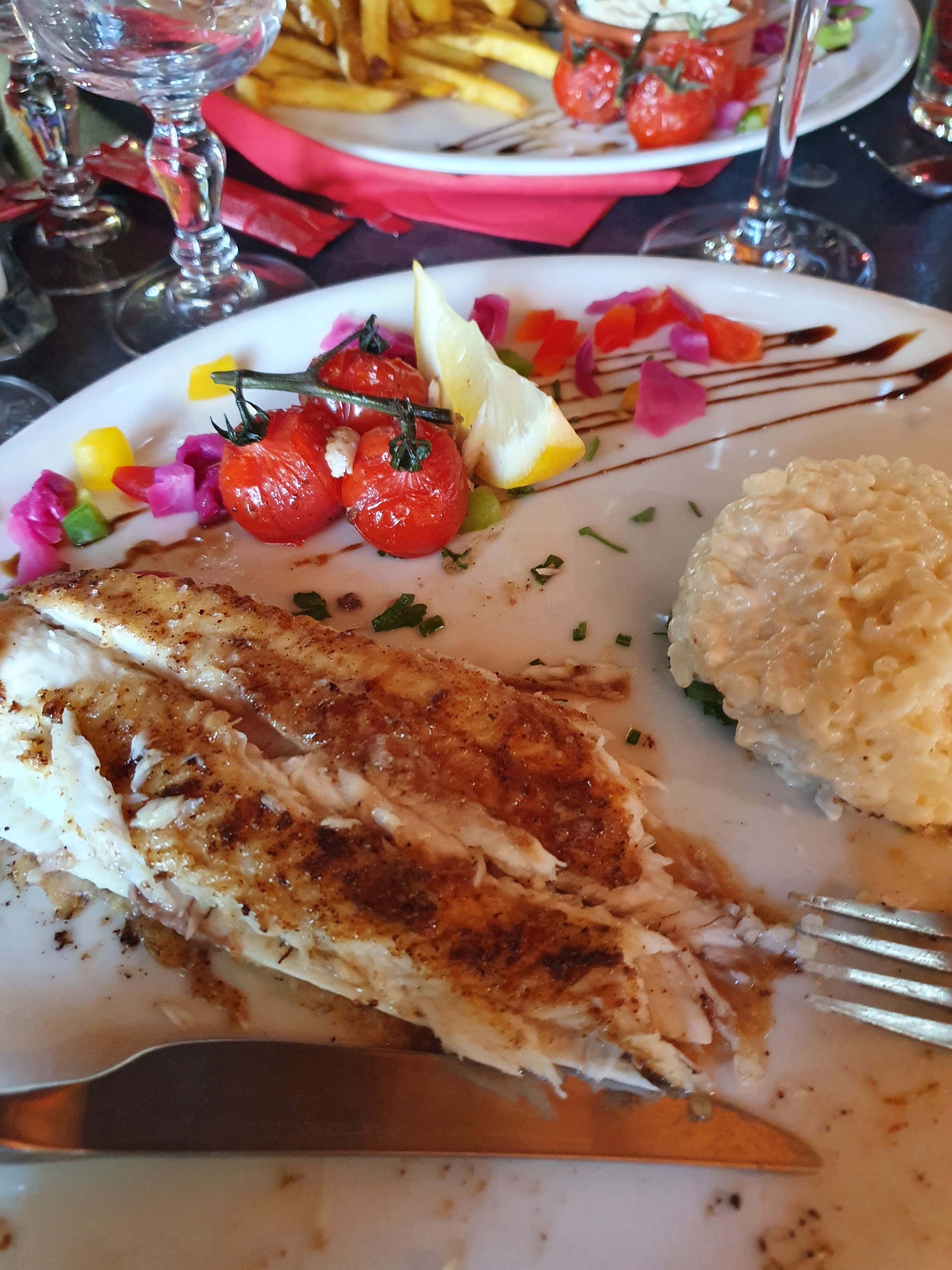 Repas excellent sèche parfaitement cuite et plats conséquent pour pas cher( mais vraiment bien conséquent ) une très bonne vue un très bon cadre et assez propre en revanche sur la carte noter frites maison mais nous donner des frites surgeler avec un personnel froid et un peux énerver plat servie assez tard (pas vrm abusé mais à noter ) Je vous le conseille fortement malgré quelque petite erreur mais prenons en compte qu’on est en août avec bcp de table