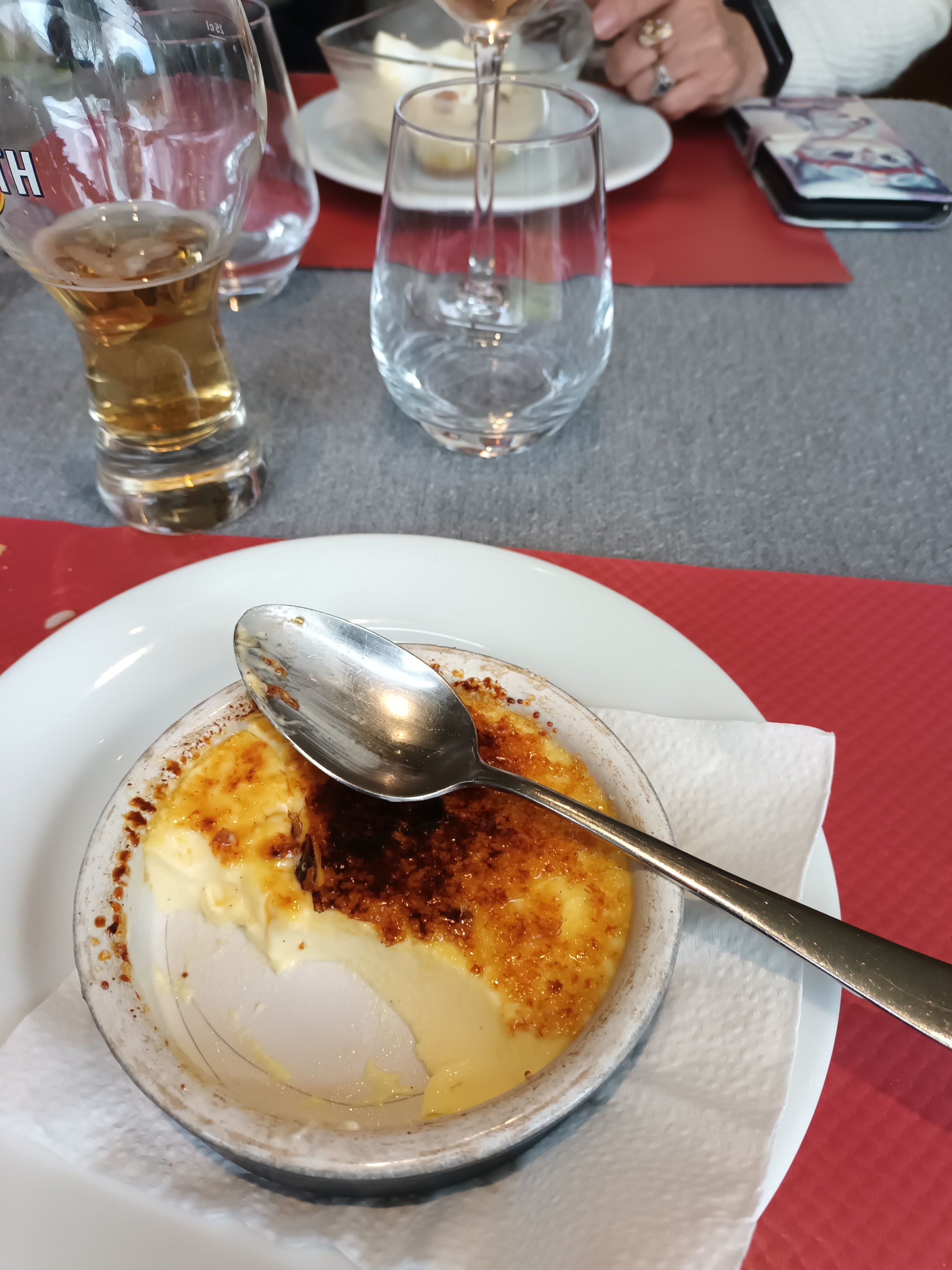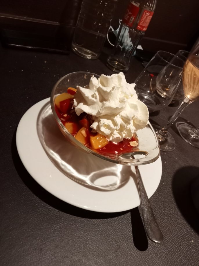 Étant amateur de bonne viande saignante j'ai été très déçu de cette soi disant entrecôte saignante que je regrette de ne pas avoir pris en photo. On aurait dit un pauvre steak cuit à la poêle devant ces 2 beaux feux de bois qui sentaient très bons.