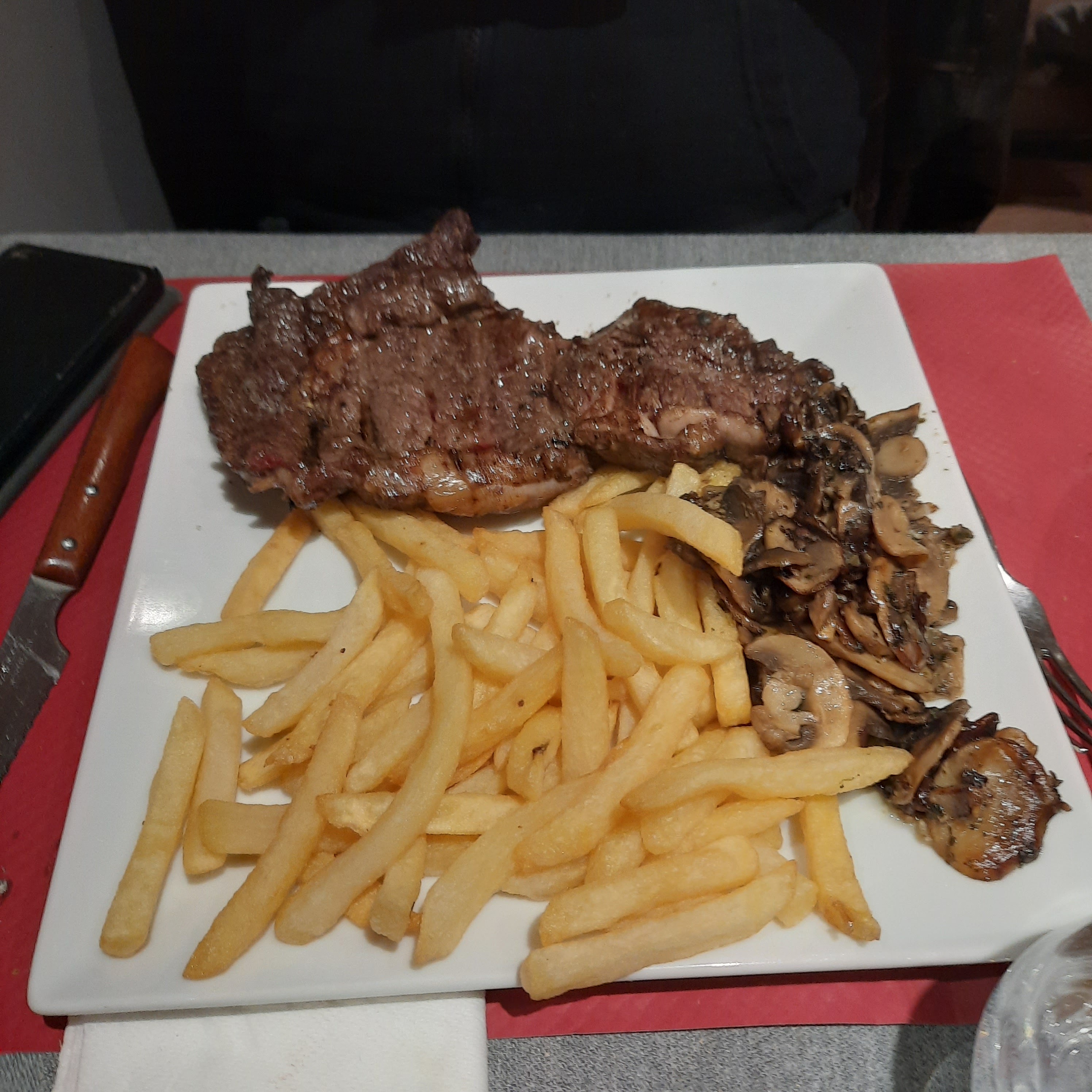 Accueil chaleureux quantité et qualité viande grillée comme j'aime vous avez marqué des points en été possibilité de manger dans le jardin à tester en hiver peur que la salle soit bruyante à recommander vivement pour les bons mangeurs ou les grosses faims