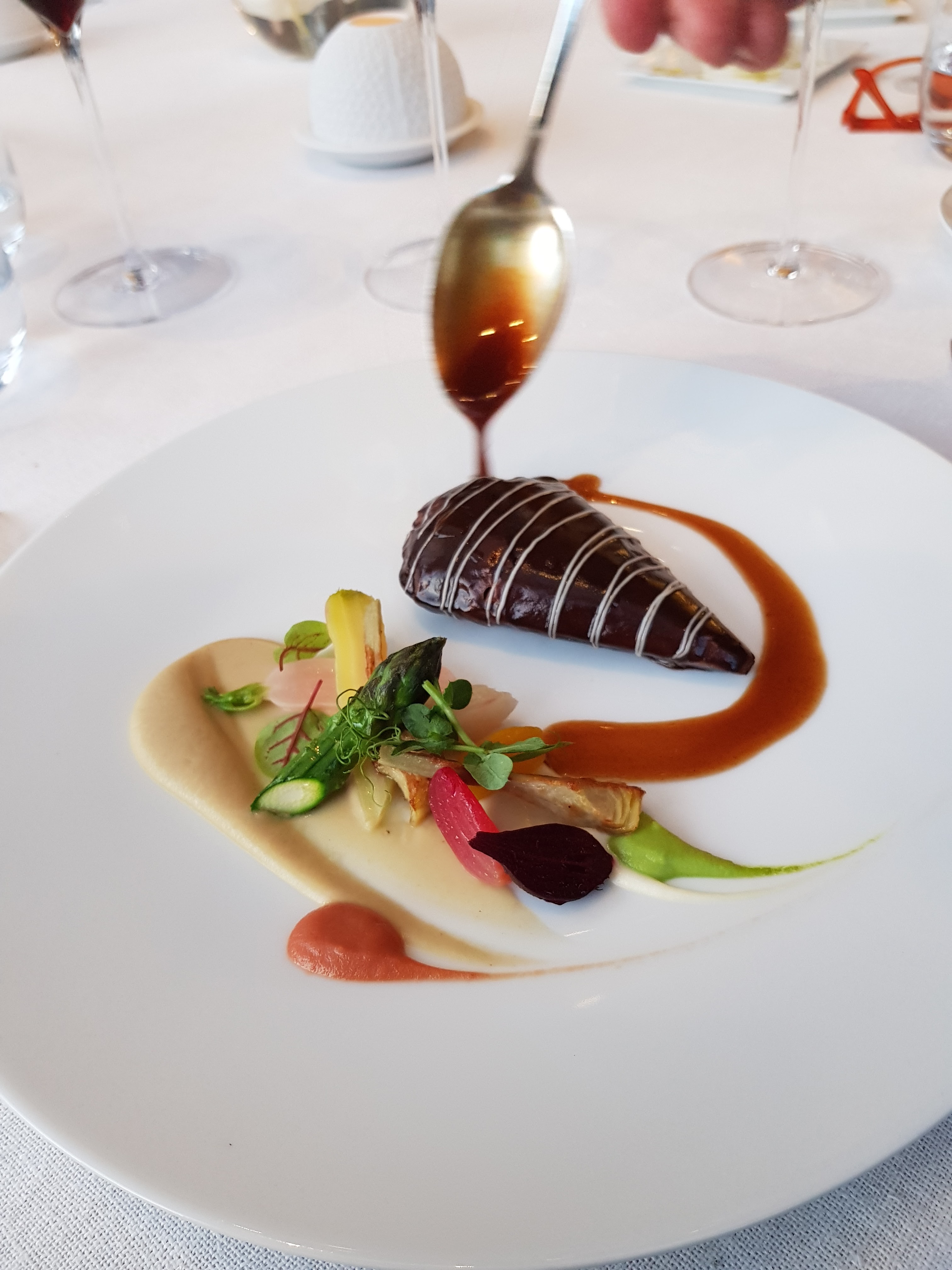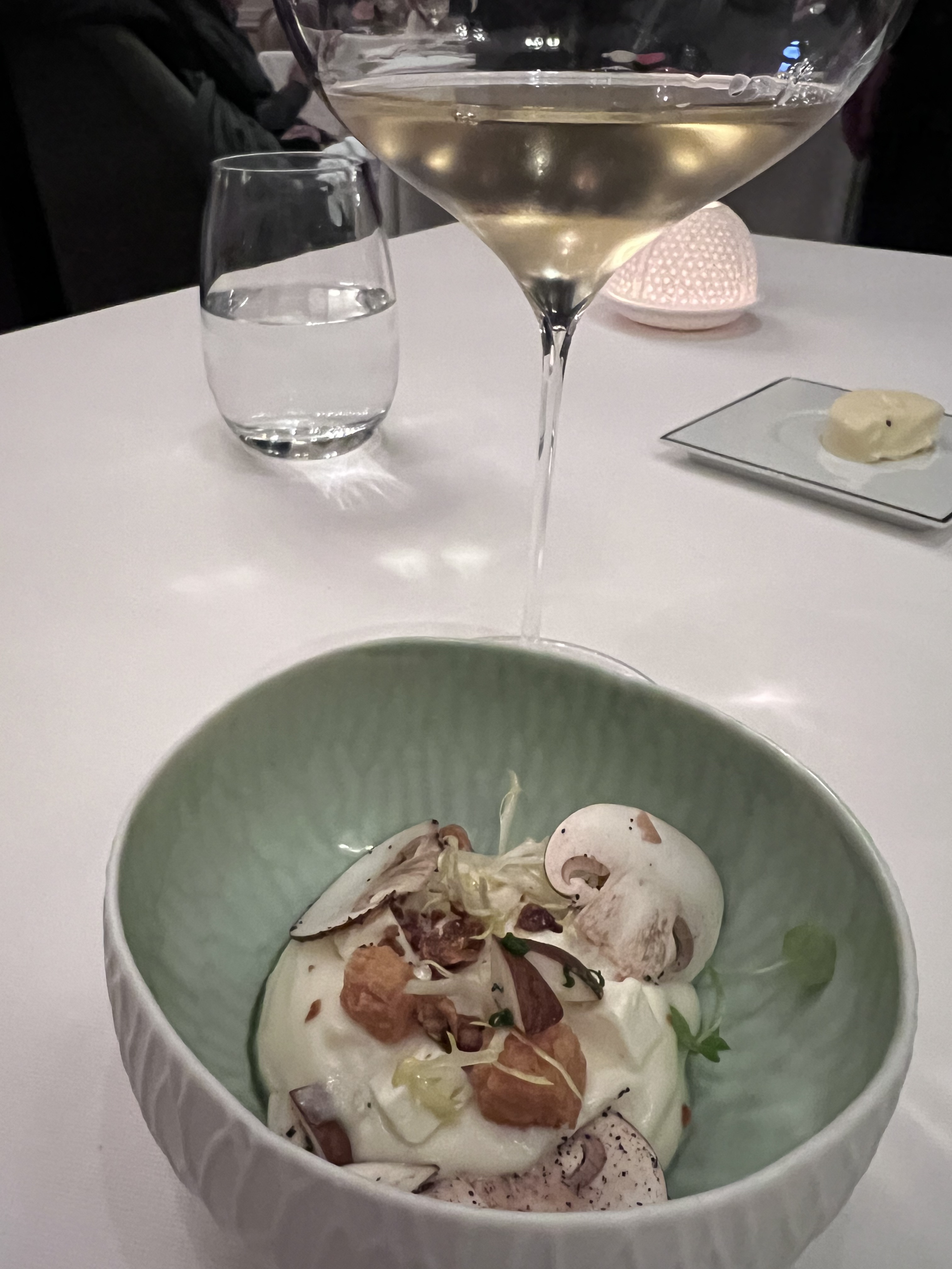 Le Parc était très avare de vin versé pour l'accord, laissant ma femme et moi avec des verres vides et sans nourriture pendant plusieurs périodes de 15 à 20 minutes tout au long de la nuit. Ce n'est pas le genre de service que j'attendrais d'un endroit avec une étoile Michelin, encore moins un avec deux. La nourriture était également correcte. Le bâtiment était très cool, mais nous avons été choqués que d'autres aient recommandé cet endroit étant donné la médiocrité de notre expérience. Je recommanderais fortement l'assiette champenoise au Parc. Nous sommes allés dans les deux restaurants lors d'une visite récente et, même si l'assiette était légèrement plus chère, le rapport qualité-prix était bien supérieur.