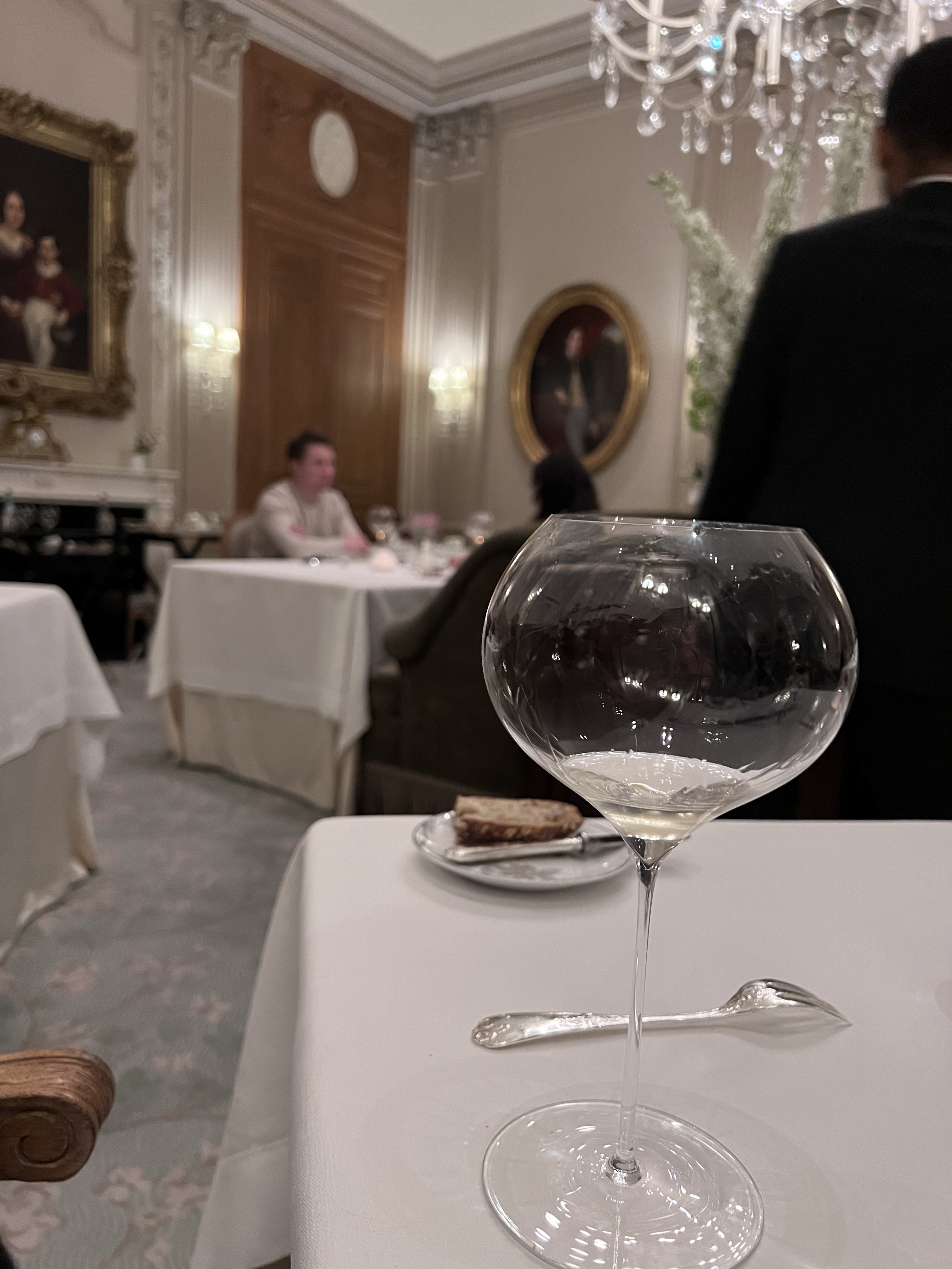 Service incroyable (presque à la limite du service étant trop attentif). Décor magnifique. Prenez un verre au salon avant le dîner. Carte des vins fantastique. Dom au verre, et ils avaient un Château Margaux disponible au verre via Coravin. Une carte complète de 50 pages de champagnes, en plus d'un 2ème livre de vins. Nous avons eu un merveilleux bordeaux blanc à un prix très élevé. La nourriture était très bonne, même si le vin, le service et la décoration étaient les éléments les plus mémorables de notre visite.