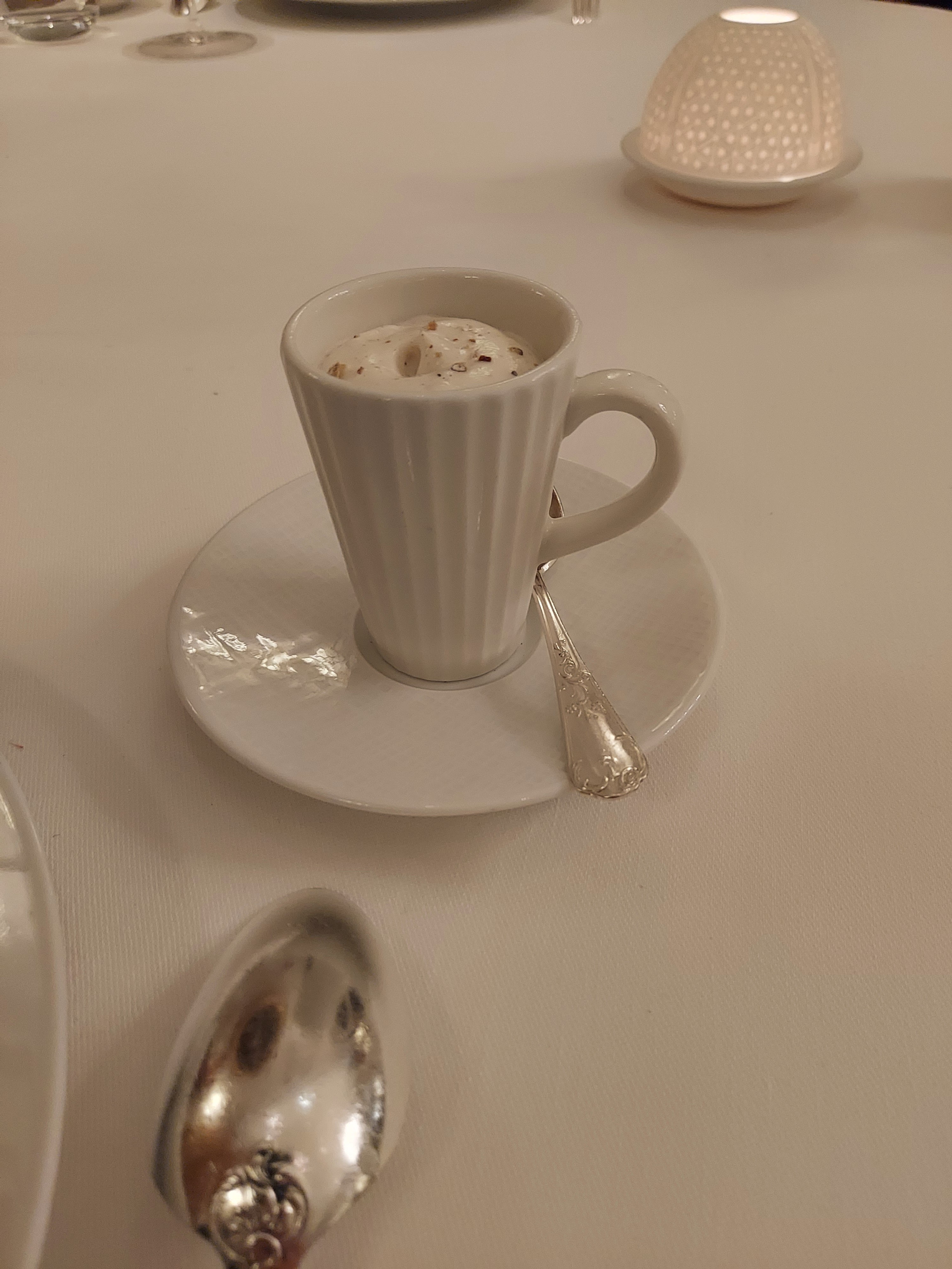 Que dire tant tout a été parfait ! Accueil charmant avec invitation à profiter de l'élégant bar et de son agréable verrière. En salle, le service est irréprochable et les sommeliers jouent une très belle partition autour de mets d'une richesse et d'une précision magnifiques. Merci pour votre accueil et vos petites attentions. Nous avons été émerveillés.