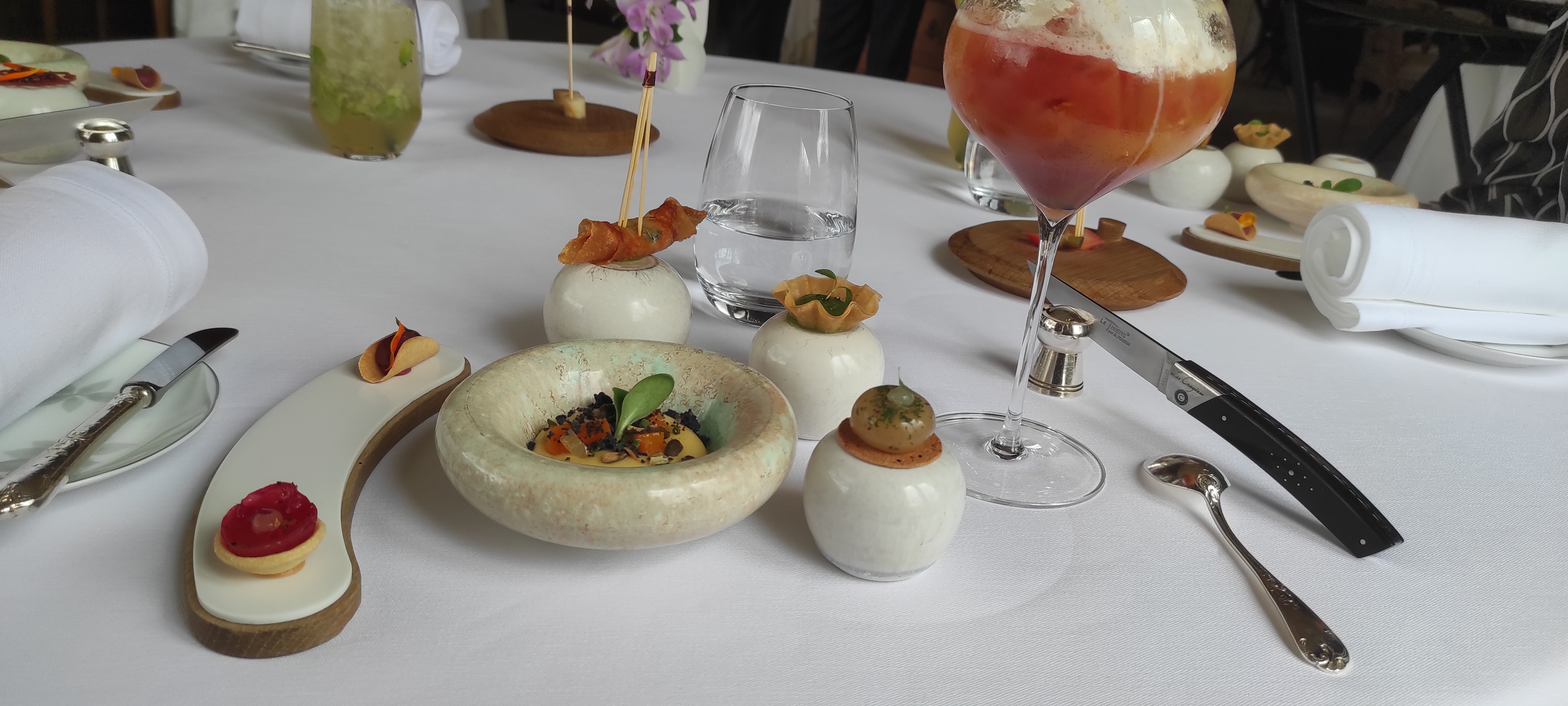 Une très belle expérience, le cadre est magnifique et le personnel au petit soin. Il manque peut-être une petite musique d’ambiance pour accompagner le repas.