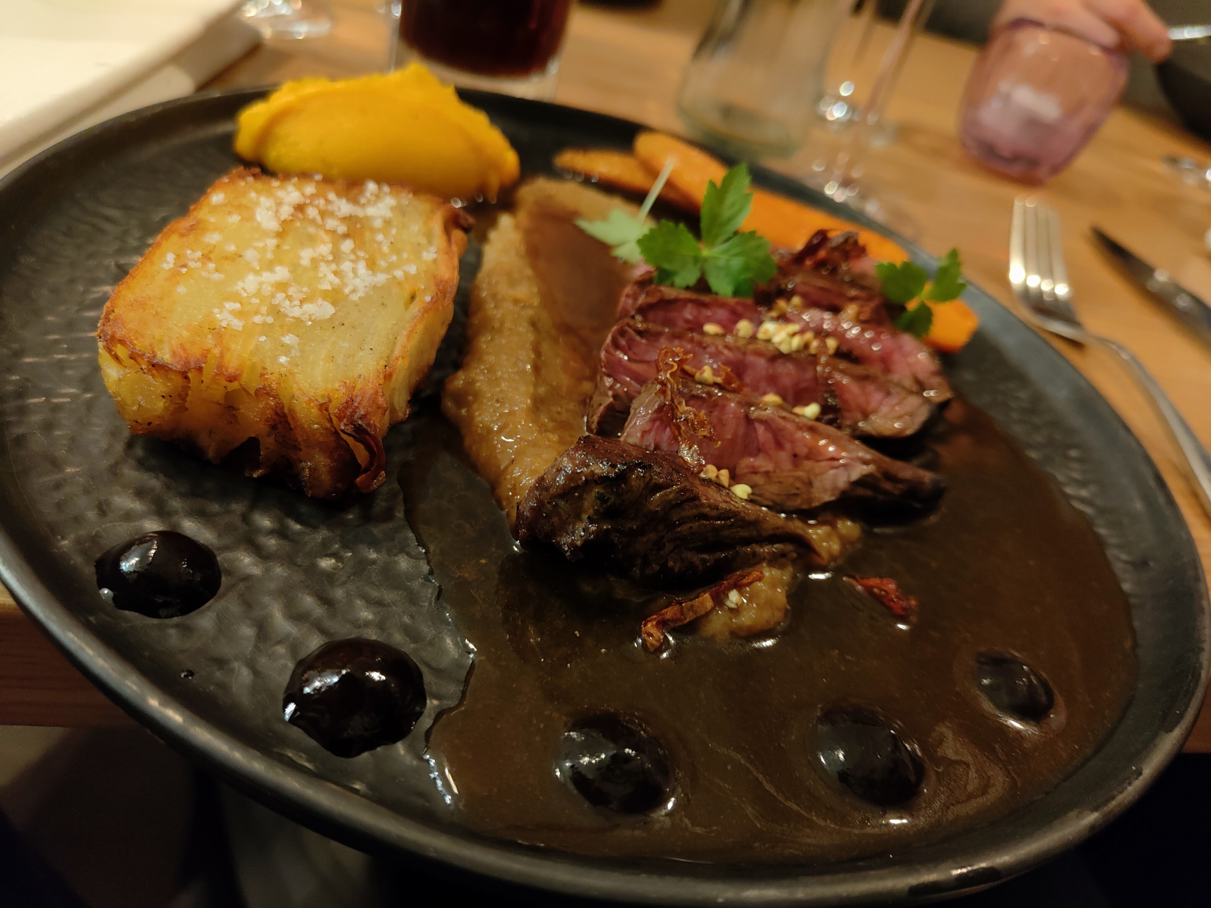 Olala j'ai vraiment adoré le ris de veau. Parfait La bavette wagyu extra