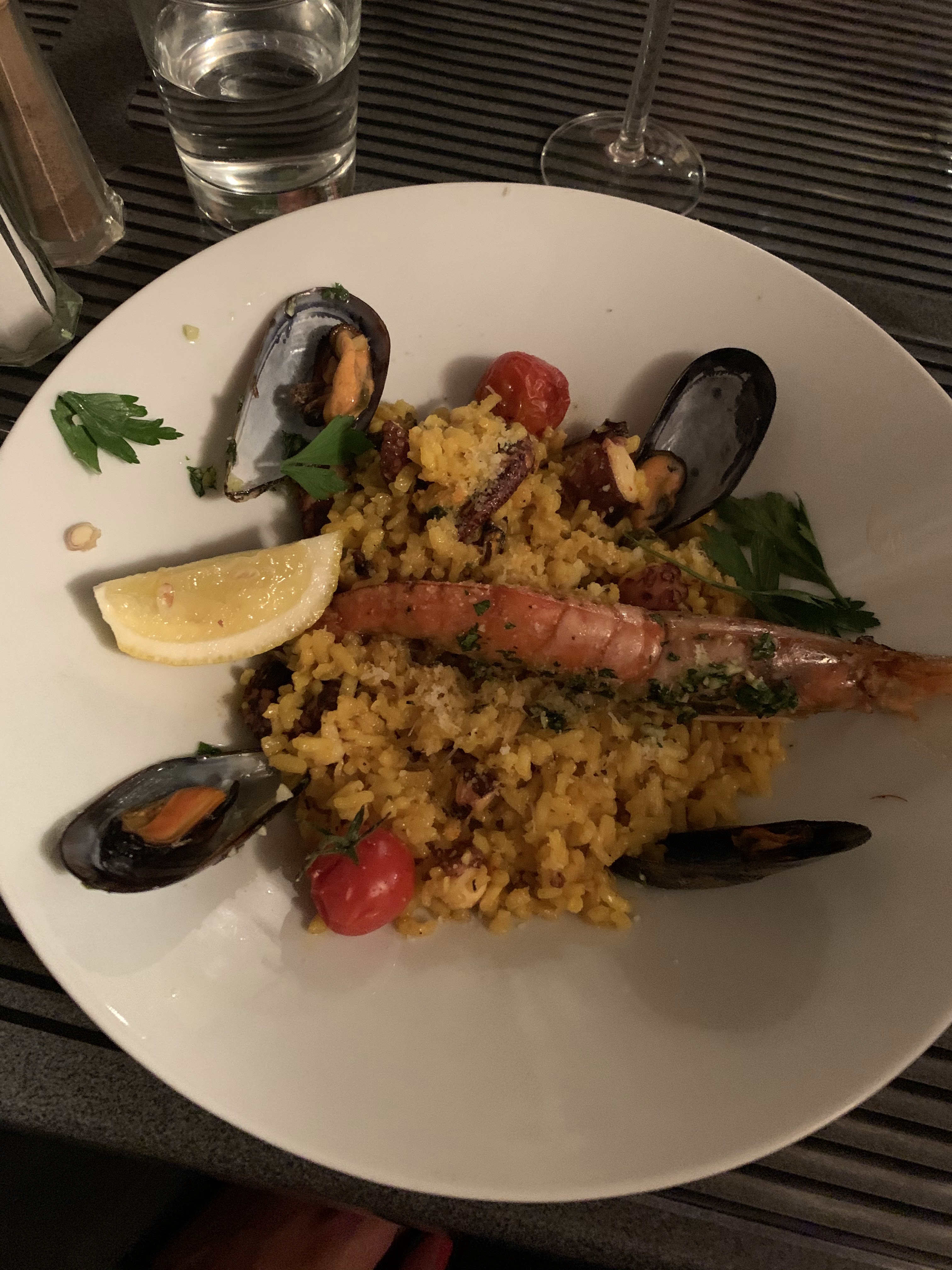 Nous sommes très déçus. Nous sommes venus au restaurant pour la variété du menu et les prix raisonnables mais je vous préviens la qualité de la nourriture est trés moyenne, voire degoutant. Le risotto a le goût du riz au lait et de l'eau de poisson. Mon partenaire n'a pu l'essayer que deux fois. Il ne pouvait pas le manger et moi non plus. J'ai vu d'autres convives laisser leur nourriture inachevée. Je ne recommande pas cet endroit.