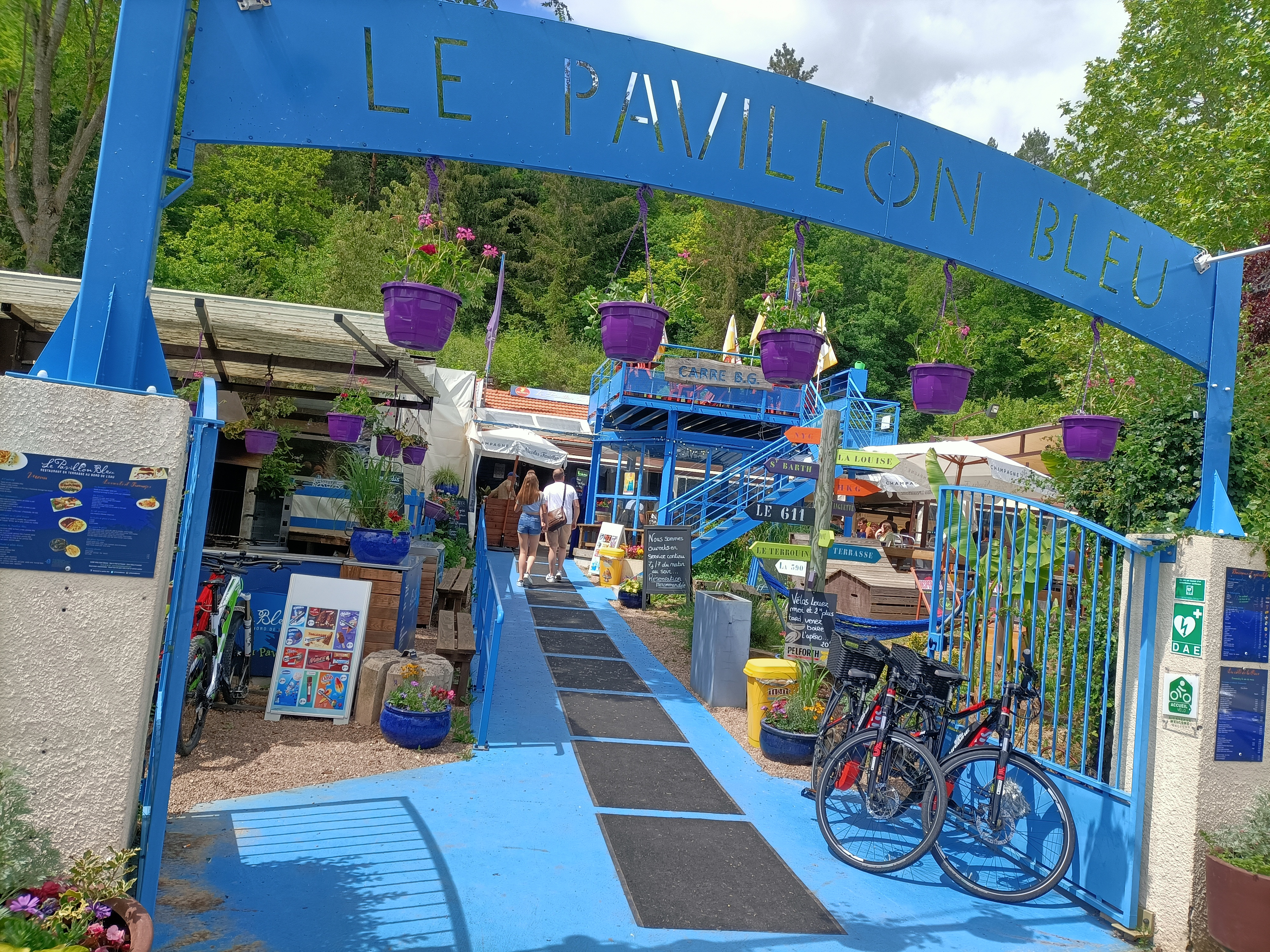 Nous aimons aller boire un verre au bord de l'eau, c'est agréable. Le pavillon bleu est ouvert quasi tout le temps et propose des soirées à thème pour tous les goûts. Les menus restent assez chers mais étant donné le cadre ça compense😊 idéal pour fêter un évènement familial