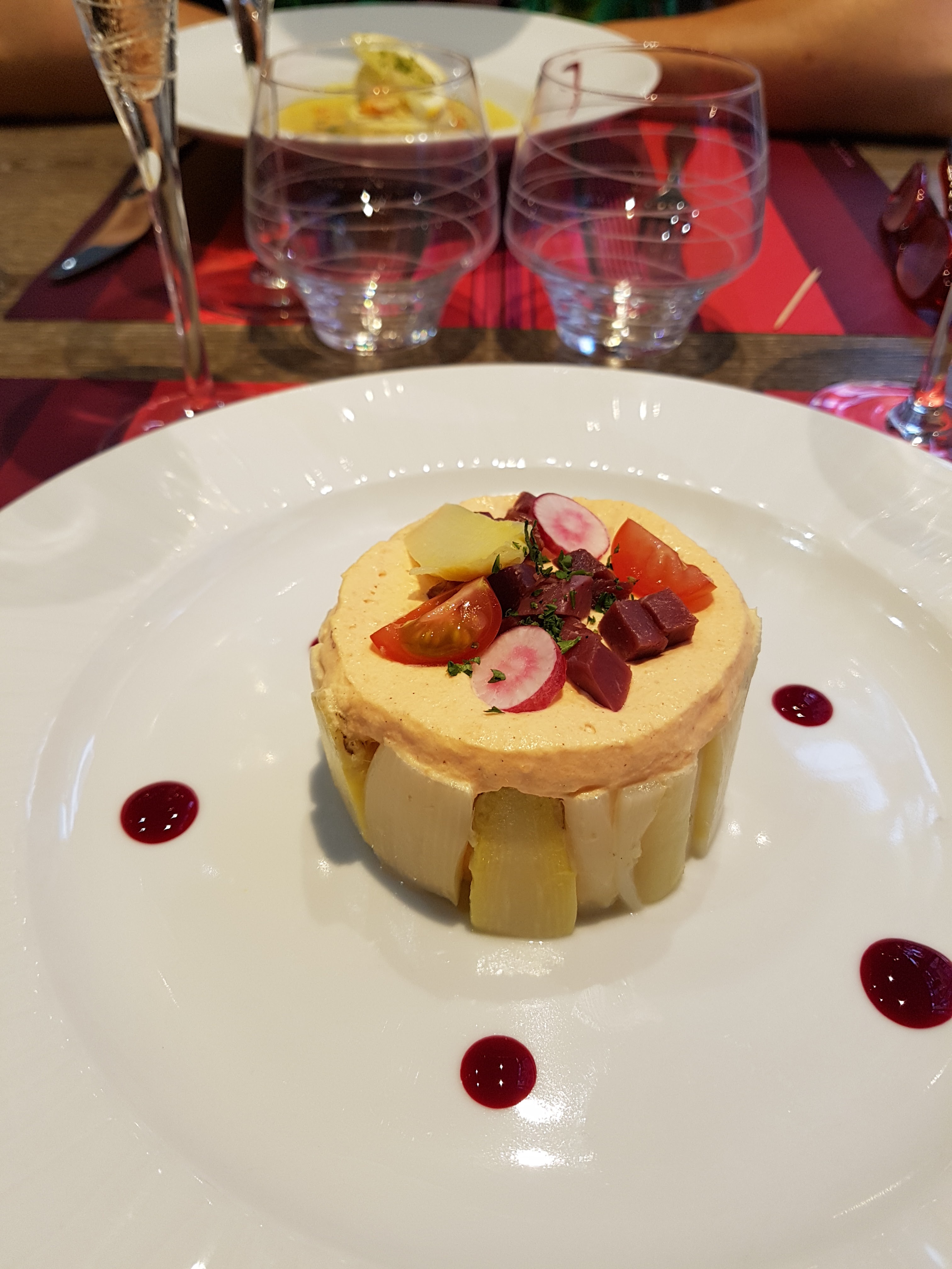 repas à 30 euros, médaillon de poisson pour moi et charlotte d'asperges pour mon ami, très bien, agneau bien cuit comme on l'aime tout en restant tendre, un café gourmand et une omelette norvégienne. Tout fait maison, délicieux et servis avec le sourire