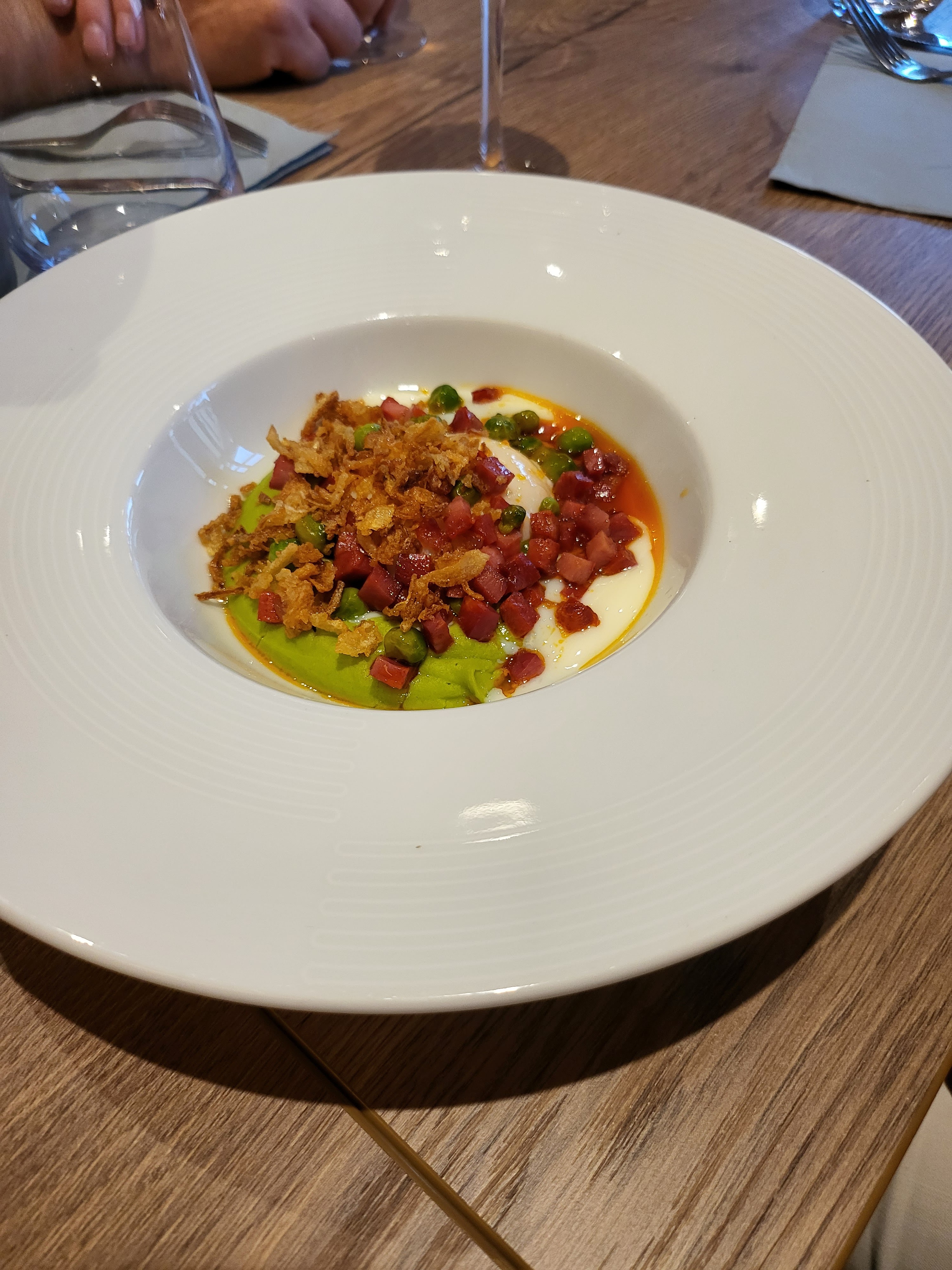 Malheureusement le plateau en bois de la table ou nous étions collait ! Pas très ragoutant en cette période de Covid.