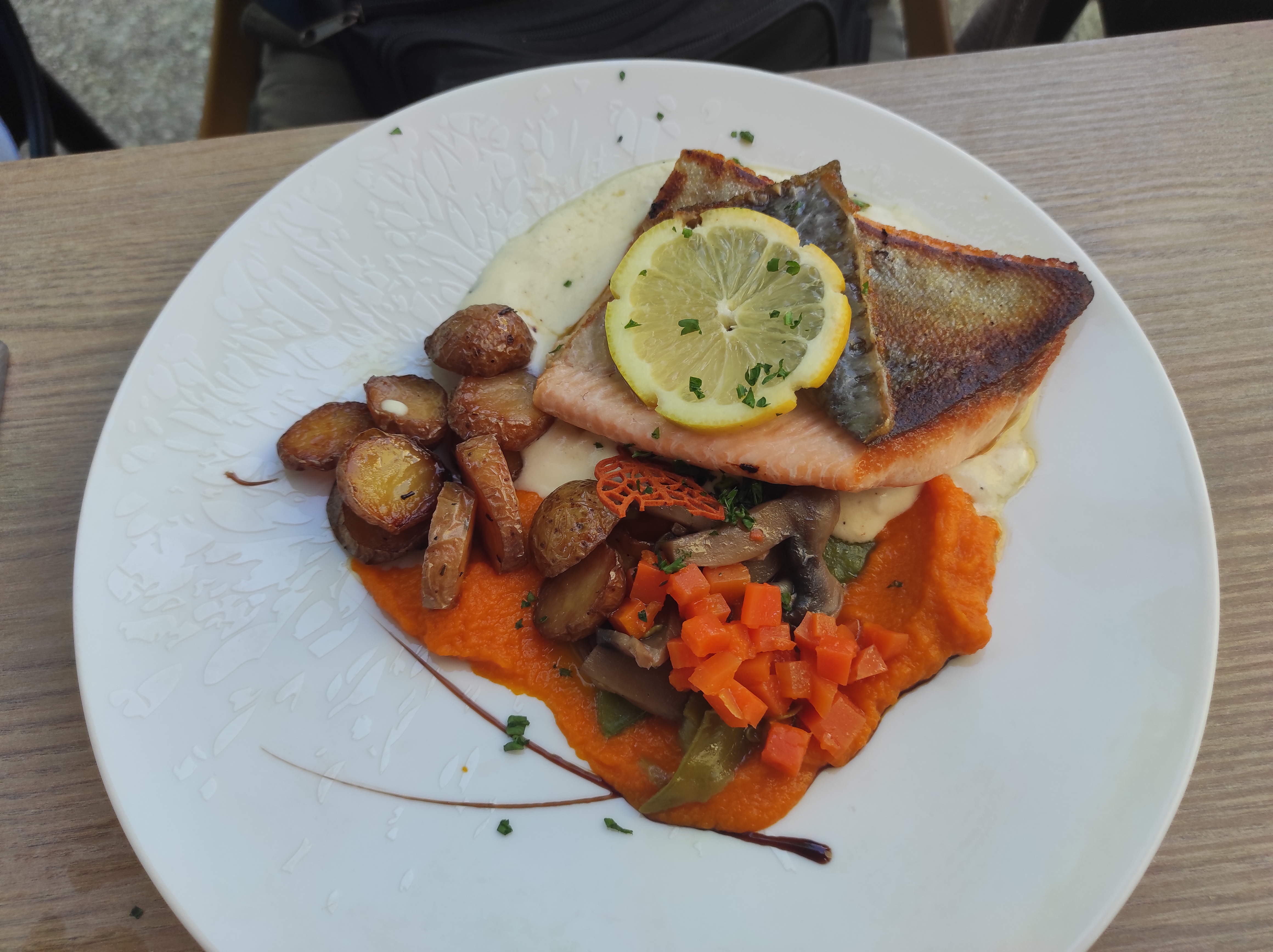 Cadre agréable serveuses attentives et professionnelles repas simple et travaillé plaisant en bouche, très bien