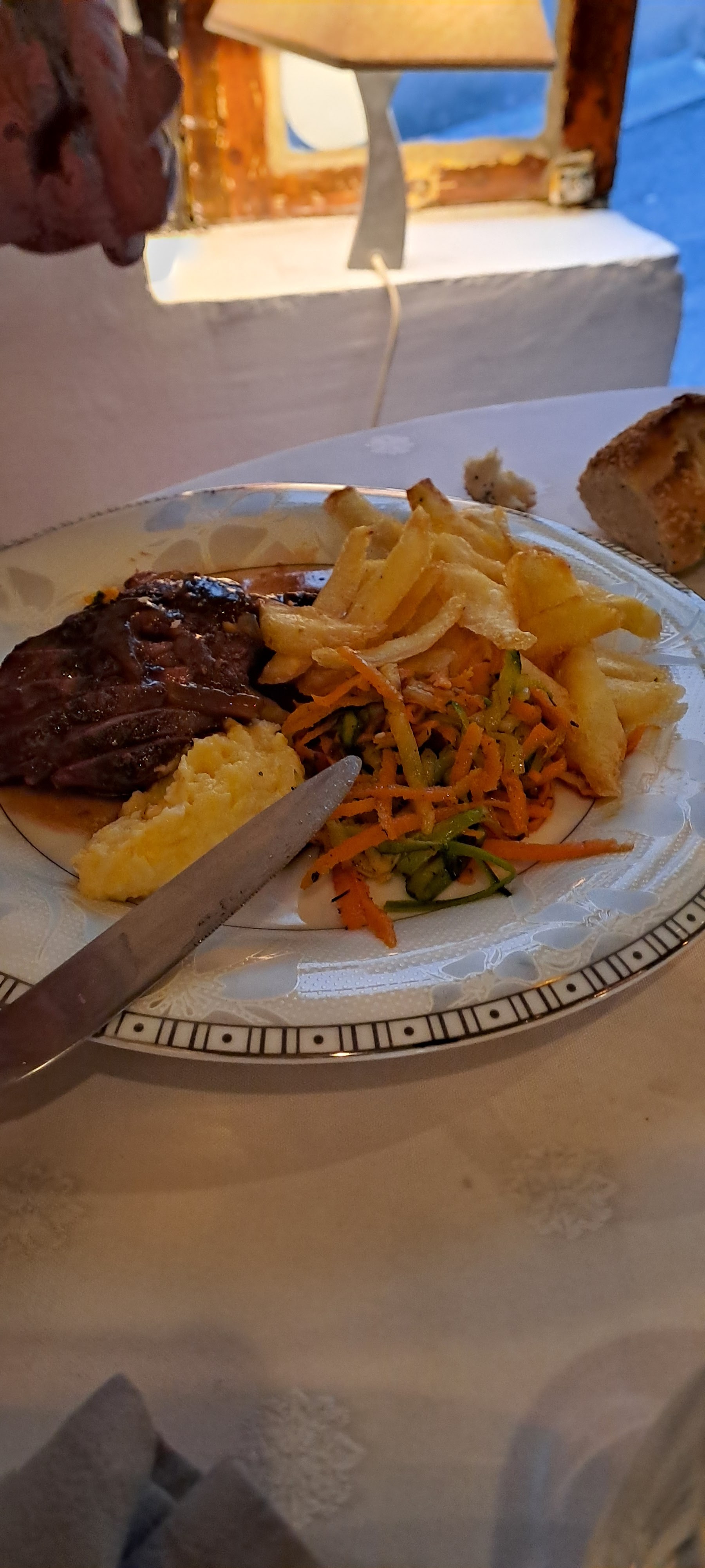 Un très petit et confortable s'il vous plaît. Nous avons eu la chance de dîner lors d'une froide soirée d'hiver en tant qu'unique invité. Nous avons eu des plats simples : en entrée une soupe à l'oignon très riche en saveur, de texture relativement dense et bien équilibrée. Ensuite, des coquilles Saint-Jacques et des magrets de canard simplement grillés, accompagnés de frites fraîchement coupées à la main (un croquant unique. Les sauces (fugue basilic et pur beurre) étaient toutes étonnantes et pas lourdes du tout. La crème brûlée et le moelleux au chocolat étaient également de qualité supérieure. . Une expérience fantastique ! Fortement recommandé