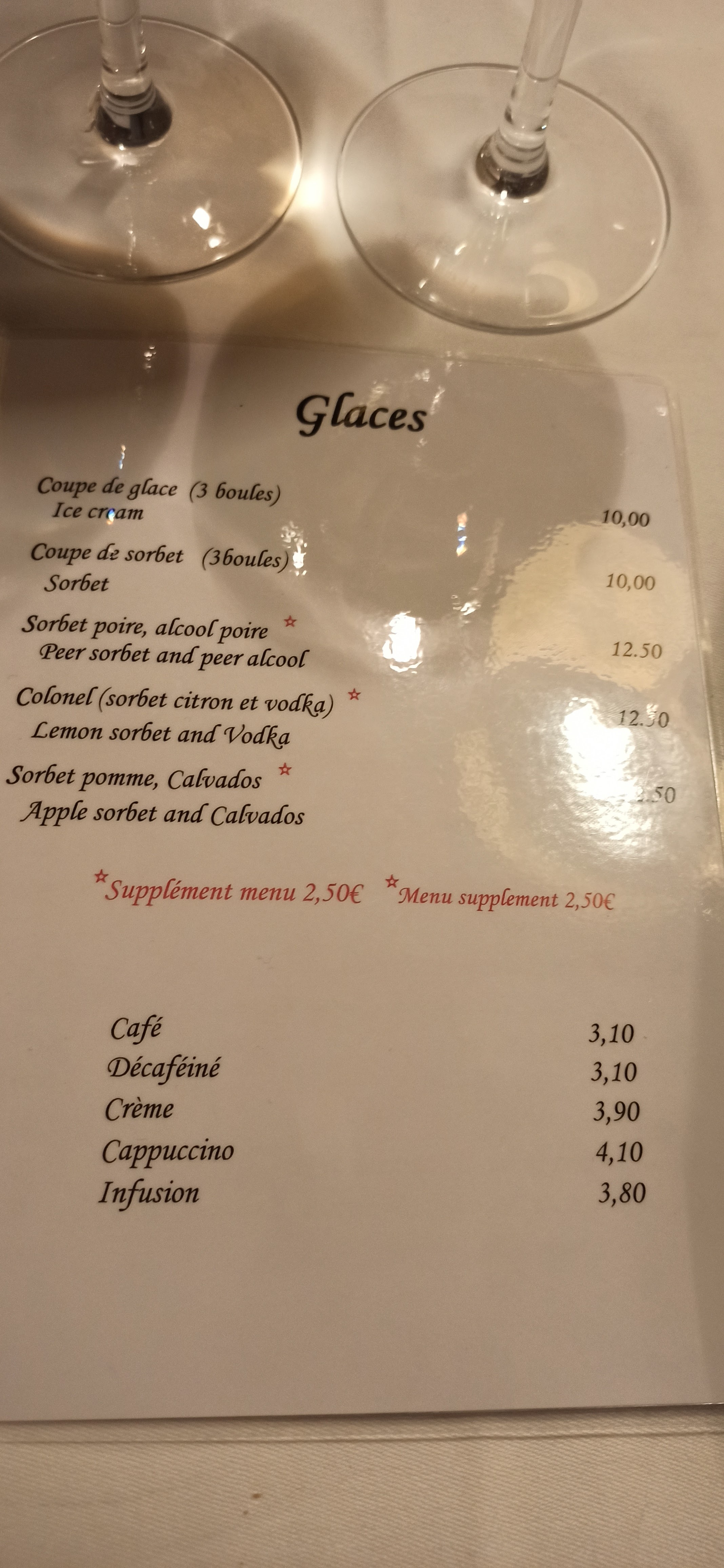 Très bonne nourriture y compris le menu!