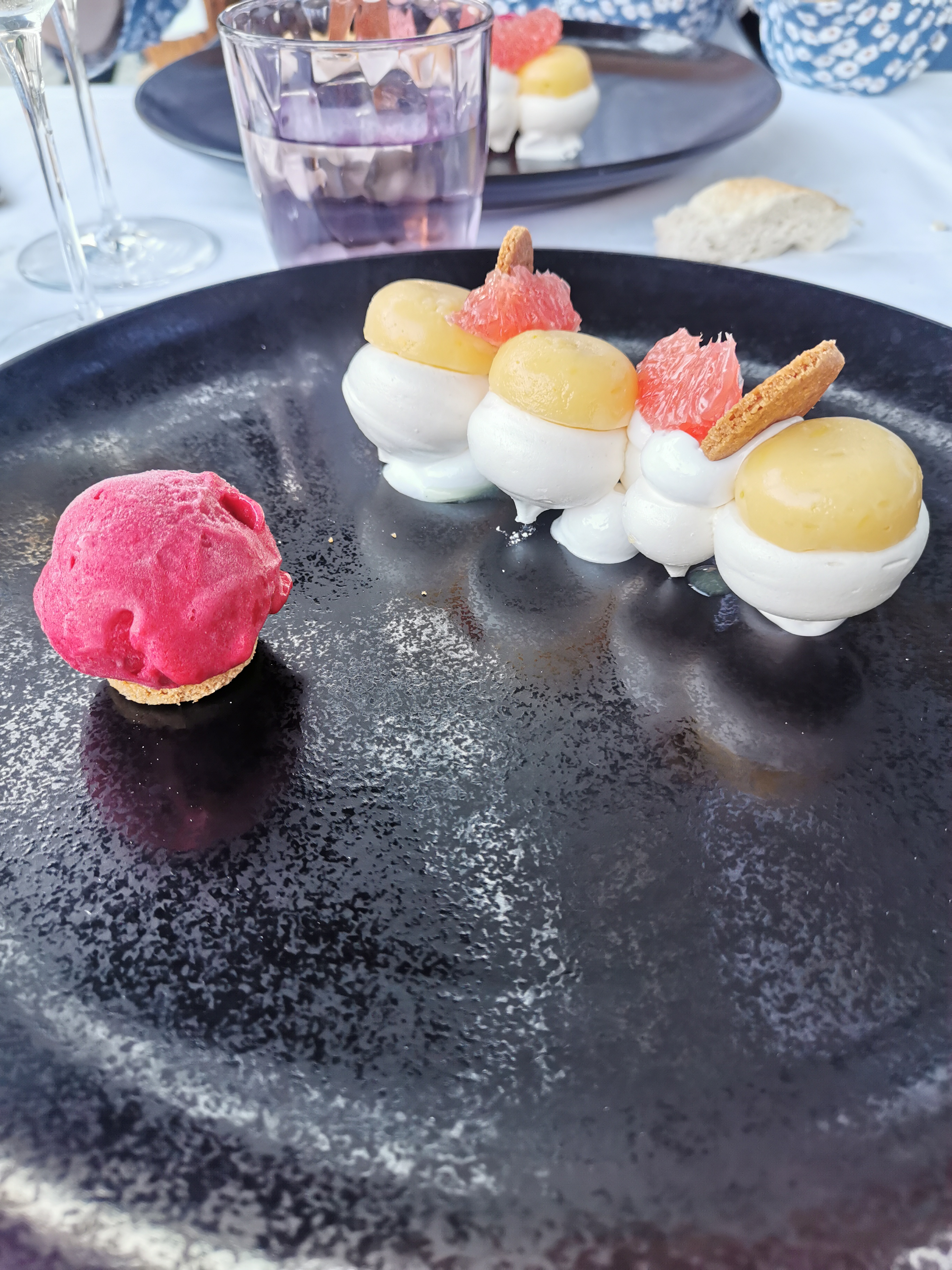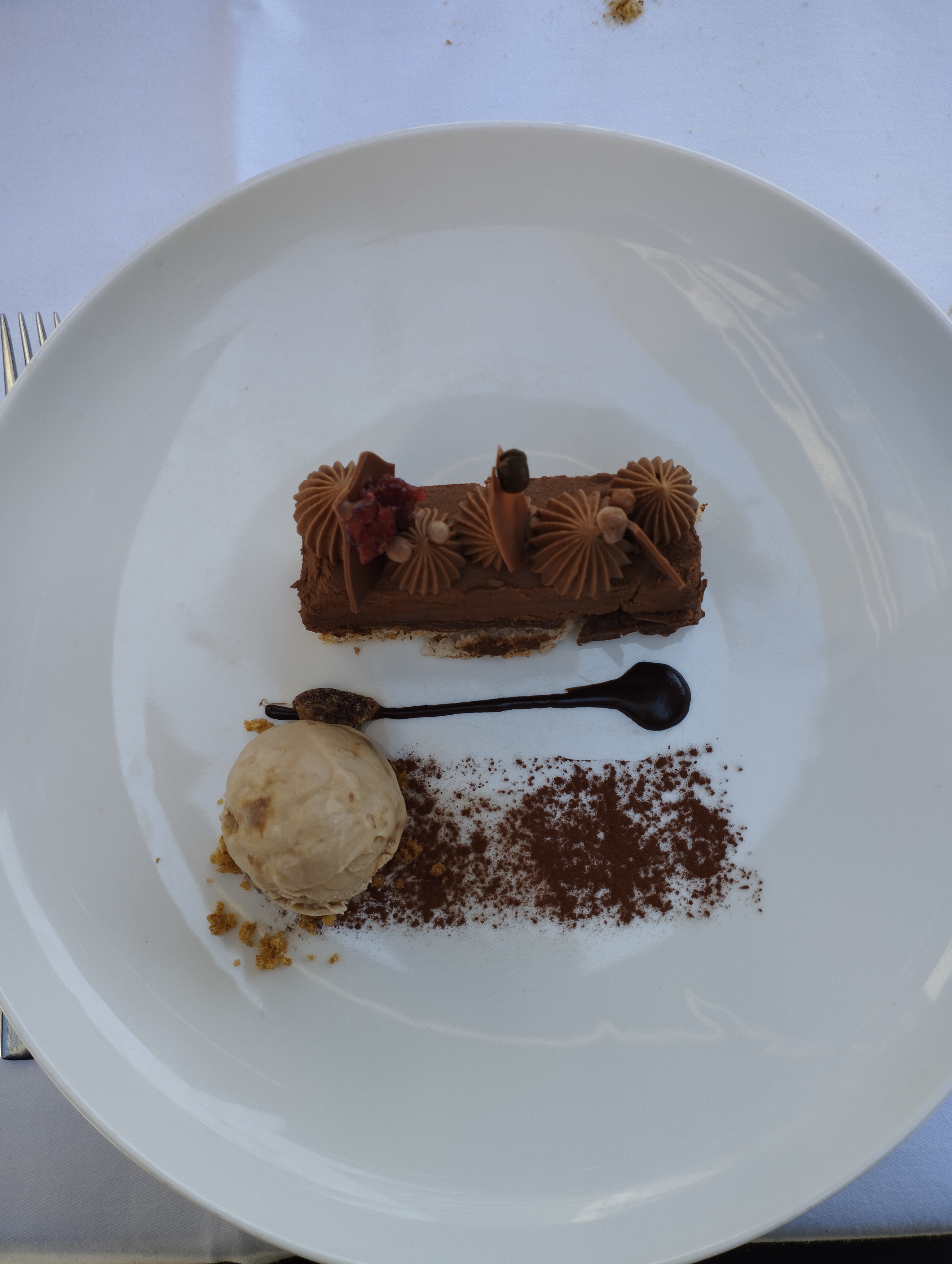 Dîner bien servi, nous avons commencé le repas dehors mais la température ayant baissée avec le coucher du soleil nous avons souhaité rentrer; le chef de rang n’était pas très enthousiaste à cette idée… malgré tout, les mets sont bons et raffinés, le seul bémol serait celui cité un peu plus haut, le personnel est un peu « sec ». Dommage…