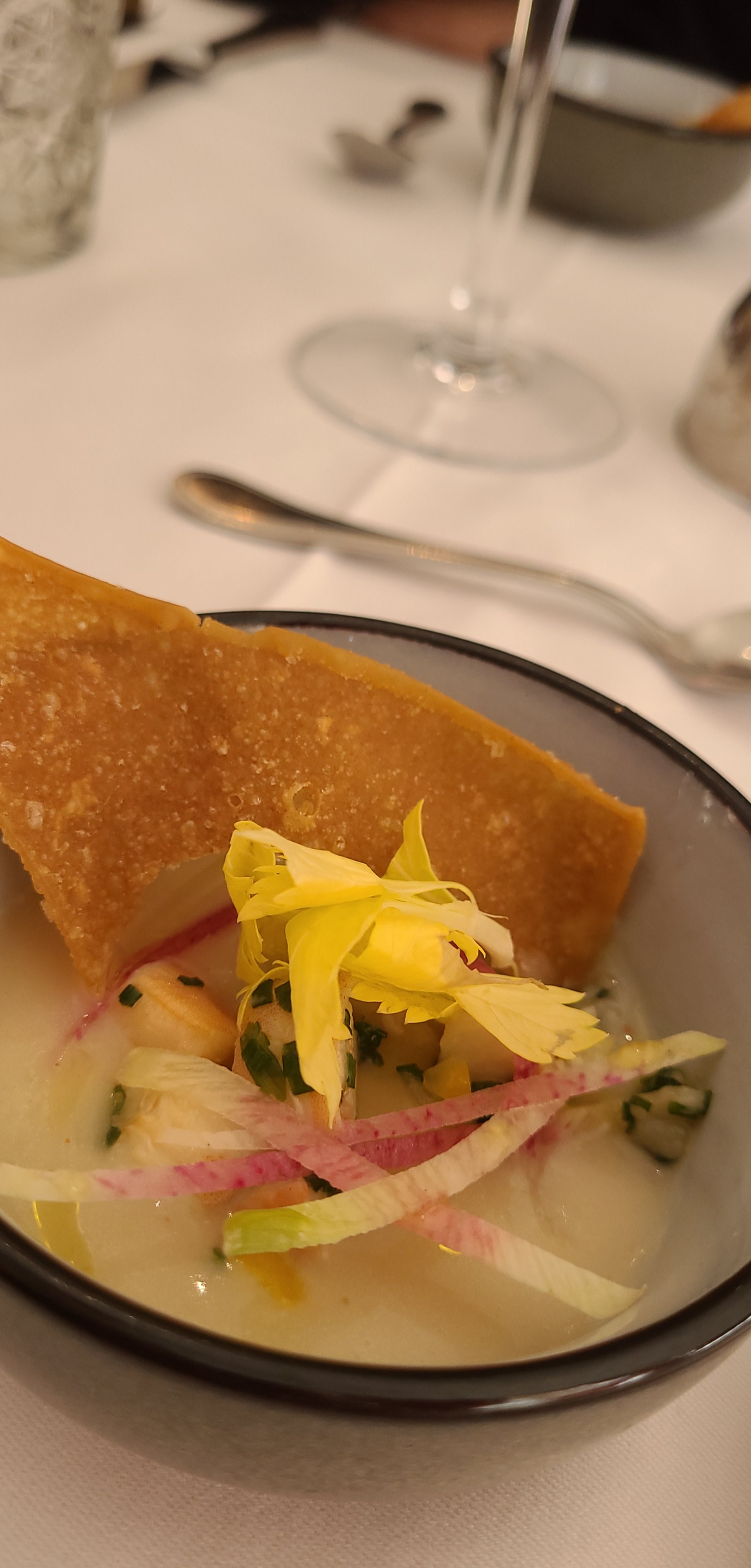 Déjà ce restaurant est magnifique, le cadre est splendide... Dommage il manquait le beau temps pour profiter de la terrasse. Ensuite, le repas était fabuleux, une carte réduite mais des mets délicieux. Et enfin, l'accueil irréprochable. En un mot : RAVI 🙂