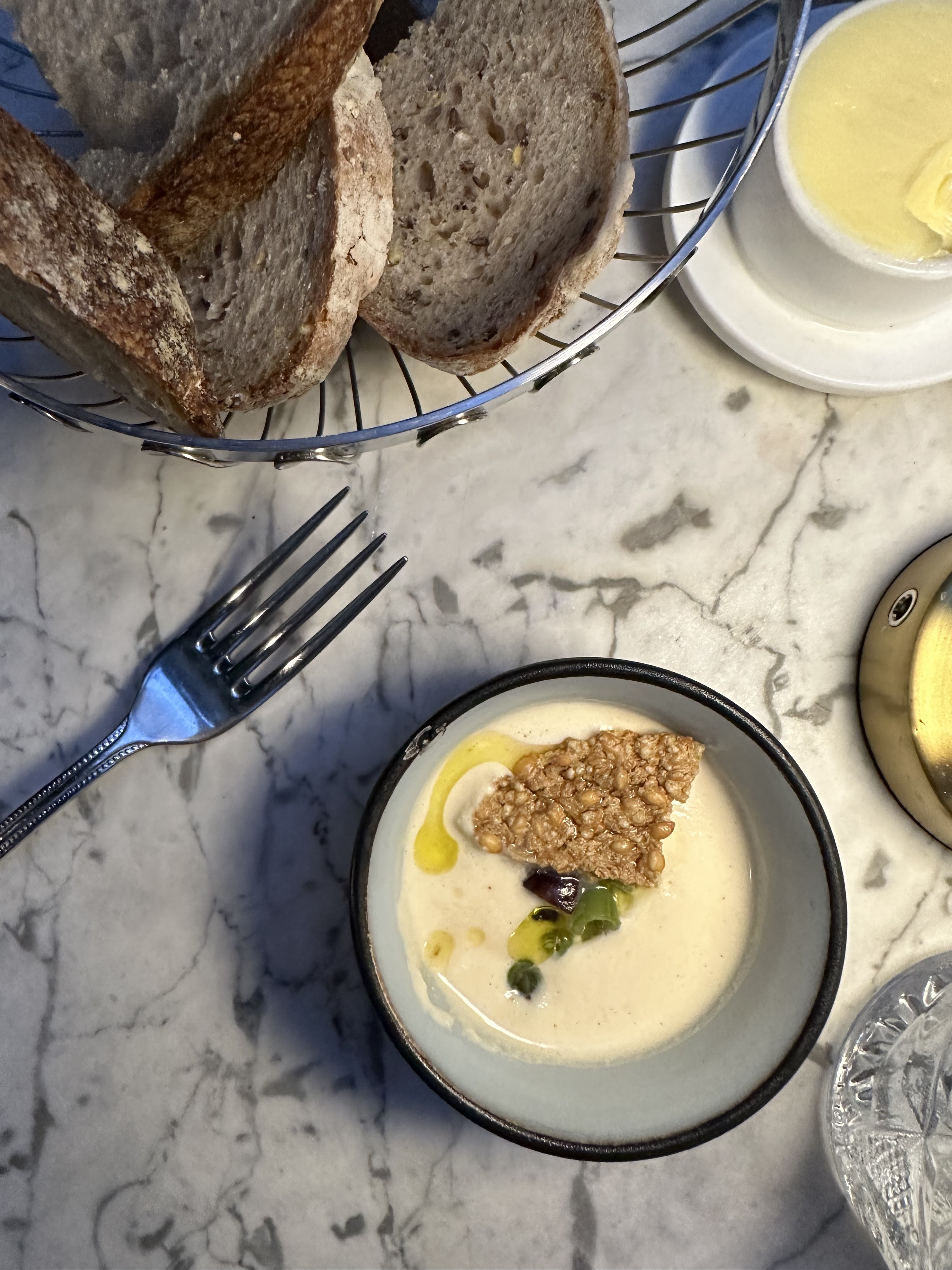 Je pense que ça va être une étoile Michelin ! c'est vrai, nous sommes ravis 🤩. tout était magique ! un compliment très savoureux du chef, pour le plat principal nous avons choisi la daurade🐟 (Dorade) et le canard - ils étaient incroyablement tendres ! et les portions sont assez copieuses, nous étions rassasiés même après l'apéritif (entrée), mais nous avons tout mangé jusqu'au dernier morceau car 🤌🏽😋 c'est dur de se détacher. c'était un dîner incroyablement savoureux ! et le sorbet citron 🍋, le sorbet mangue 🥭 sont fantastiques ! Et des biscuits au café😍. J'ai été très impressionné par l'apéritif de fleurs de courgettes farcies. recommande vivement cet endroit! 👍🏼😻