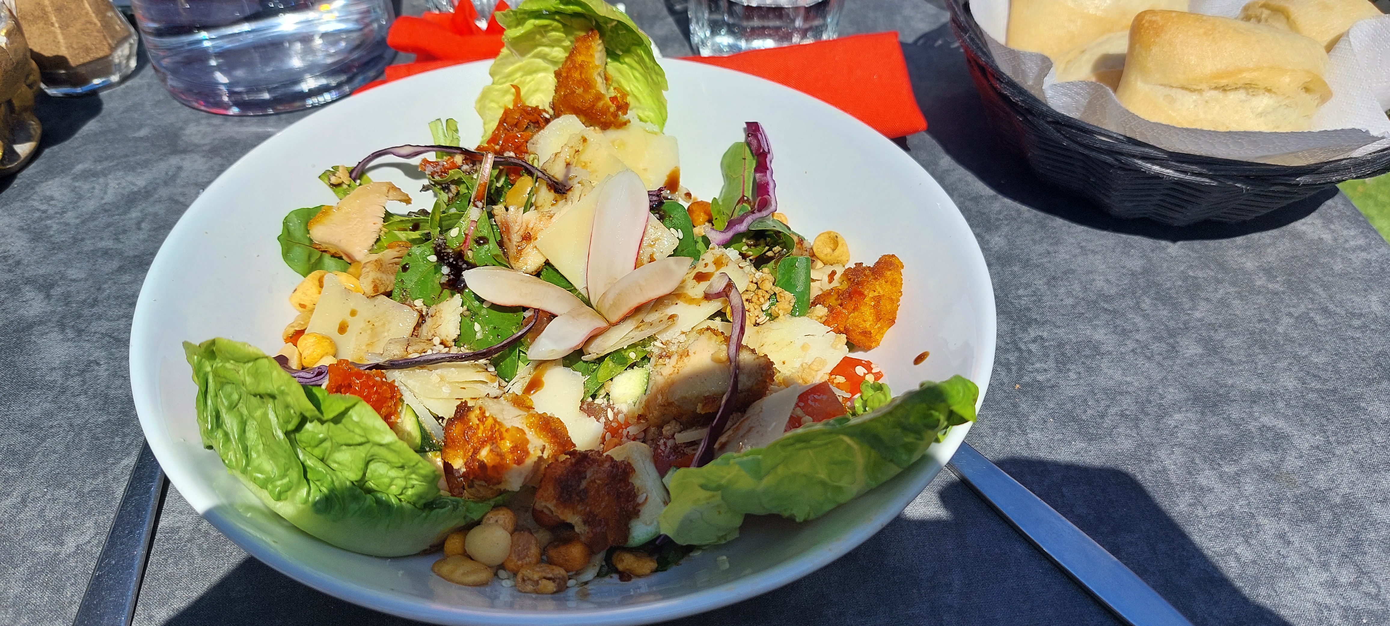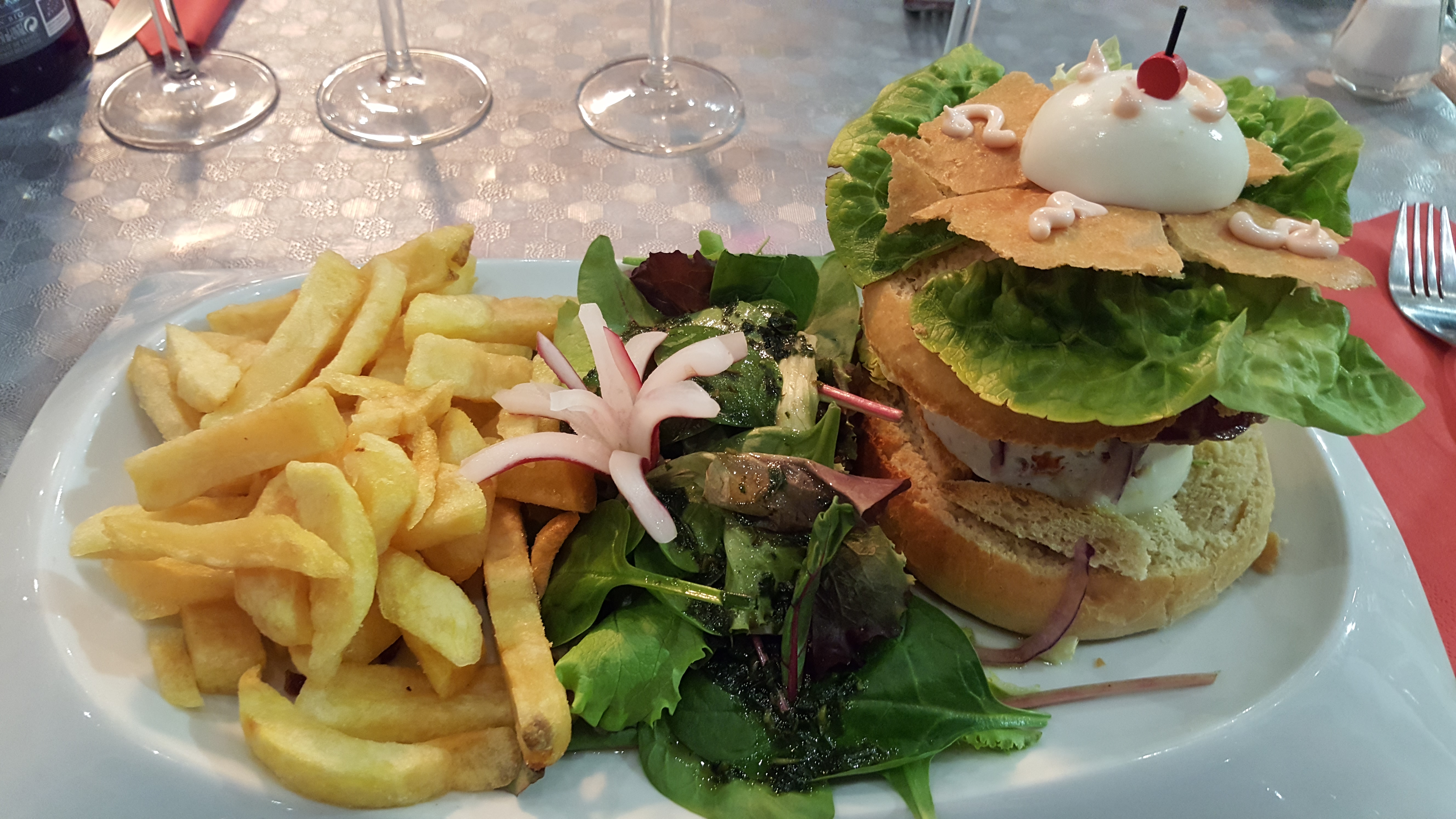 La deuxième expérience dans ce restaurant nous y étions déjà venu en 2017 et franchement tout aussi bon et frais . Nous avons pris une salade César et moi une chèvre chaud , les deux étaient au top et fraîche nous avons ensuite pris le hamburger frite et la aussi très frais , c est il y aurait d autres pains cela serait très bien pour le choix. Le vin du patron est valable quoique prix un peut élevé pour celui ci . Nous vous recommandons ce petit paradis et sûrement que nous y reviendrons