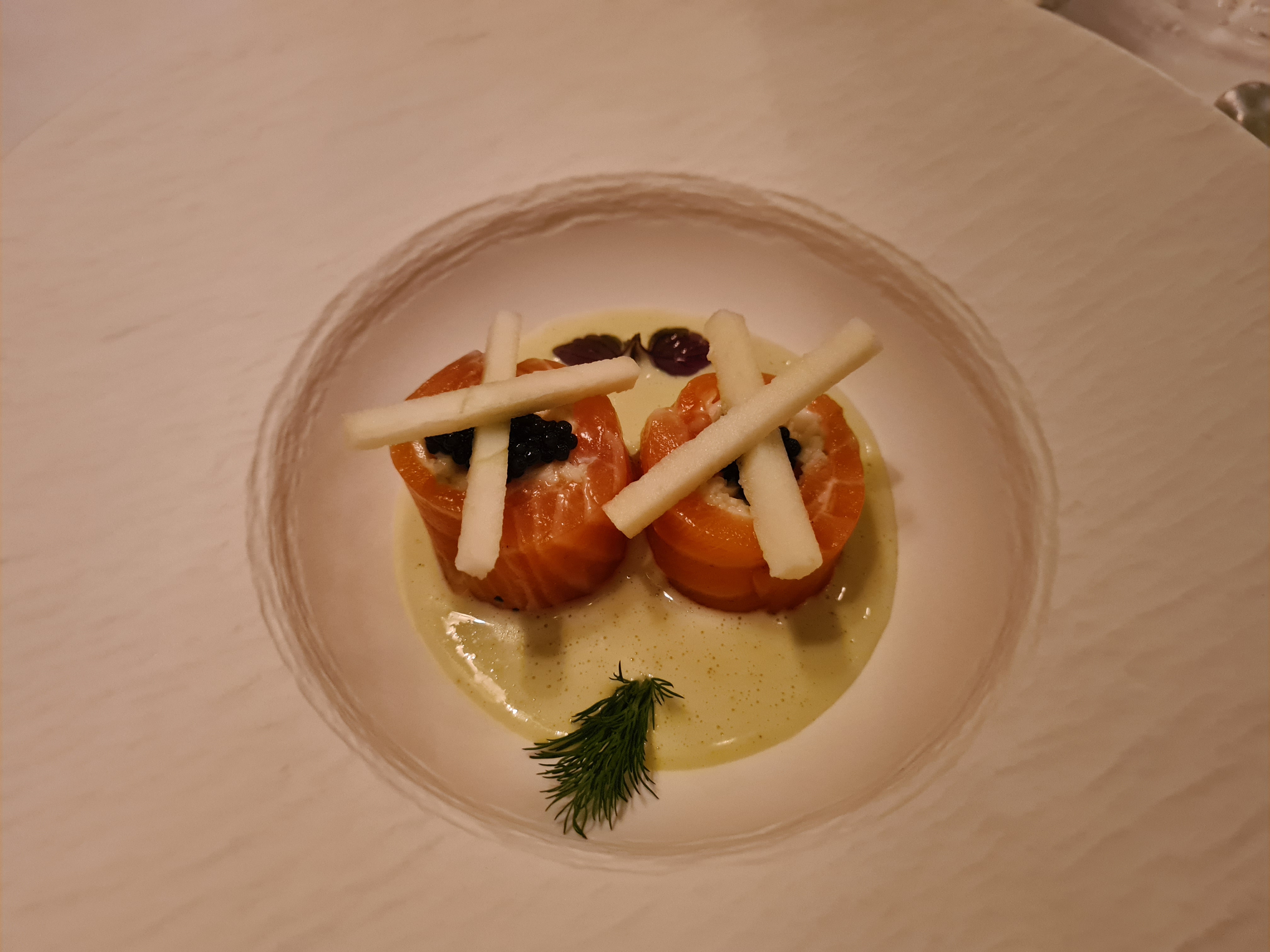 Nouveau décor d’enfer . Grand chef . Carpaccio de langoustines sublime