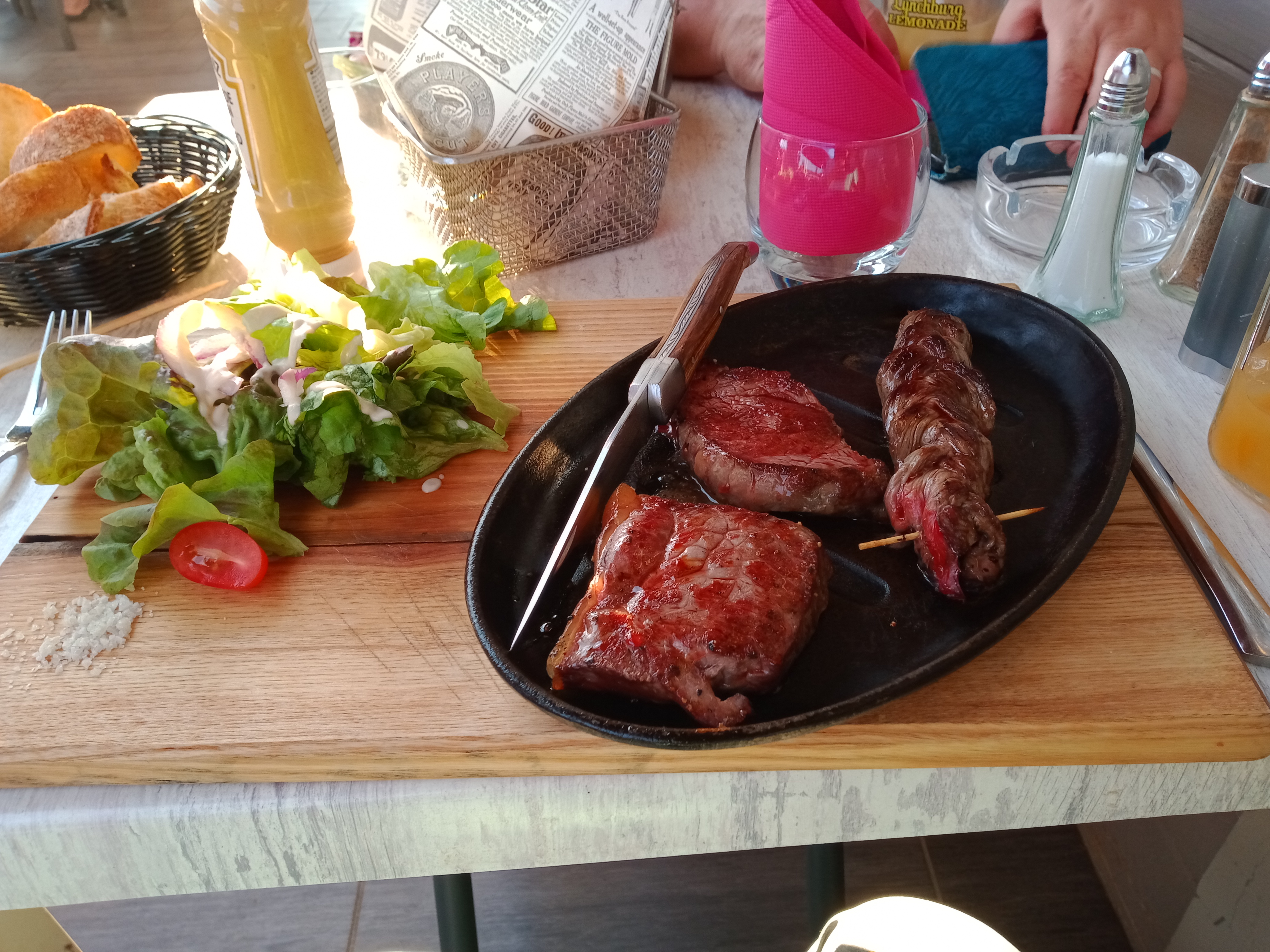 Le 4 aout midi. Nous avons très bien mangé, nous avons opté pour la découverte de viande. Super bon, cuisson parfaite. La brochette tressée, bravo. Encore une fois nous sommes ravis. A bientot avec grand plaisir.🤪