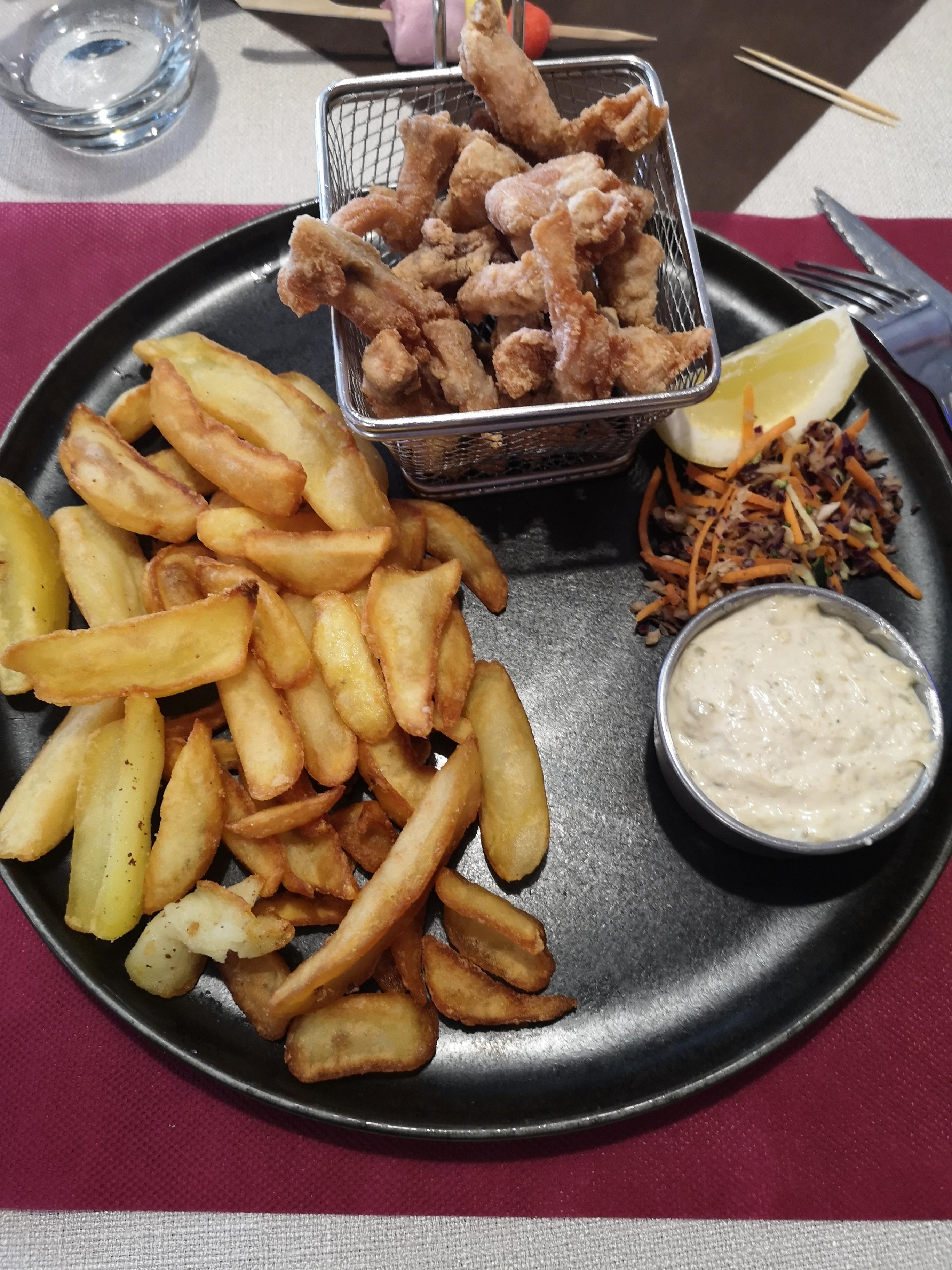 Déception Filets de perche trop frits, secs et à peine tièdes. Quelques frites et 2 feuilles de salade se couraient après dans l’assiette. Apparemment le poisson n’est pas leur point fort. Un peu de panique dans le service et serveuses pressées de débarrasser notre table entre chaque plats..erreur dans les desserts etc.... dommage. Grosse déception..