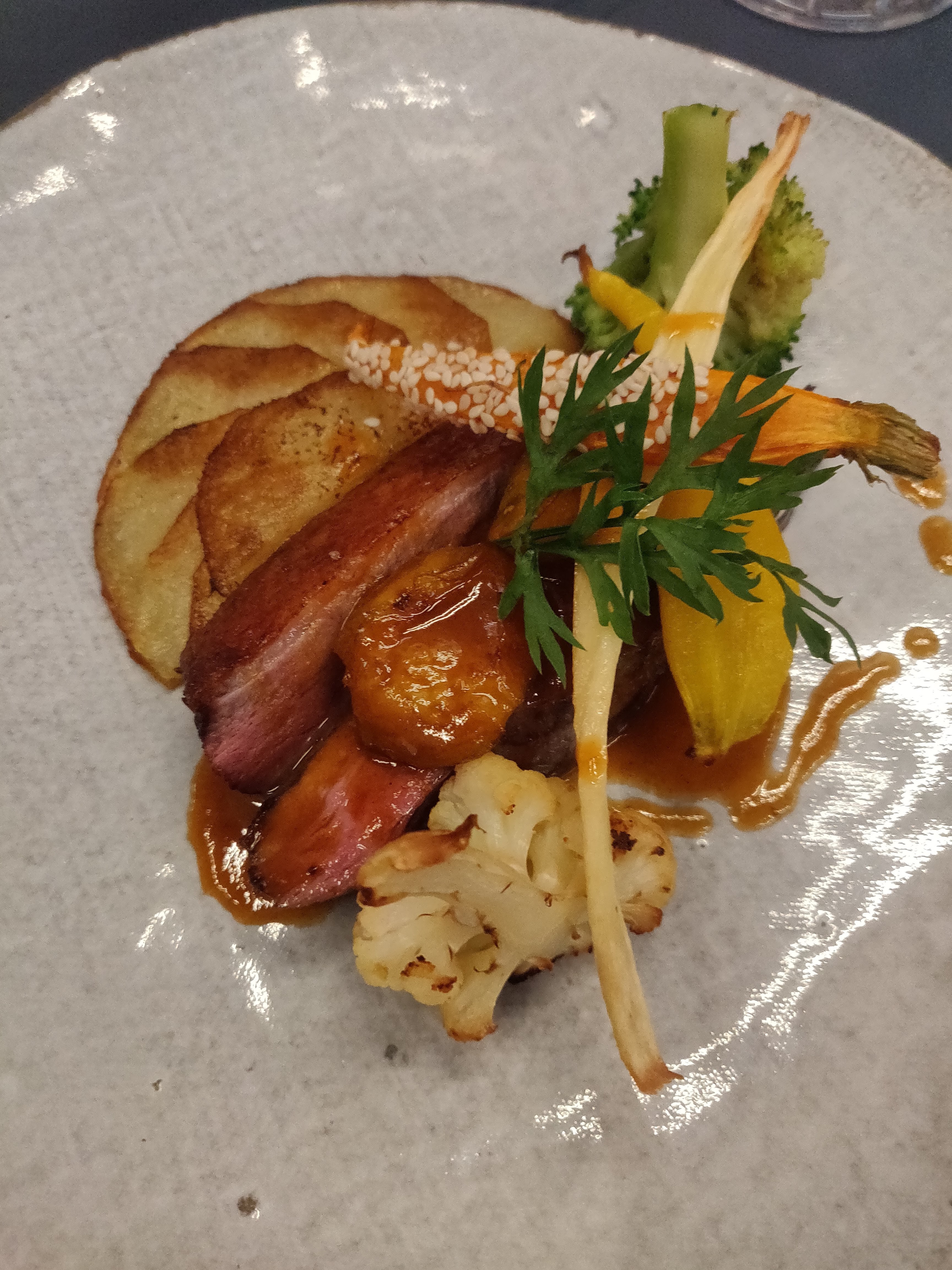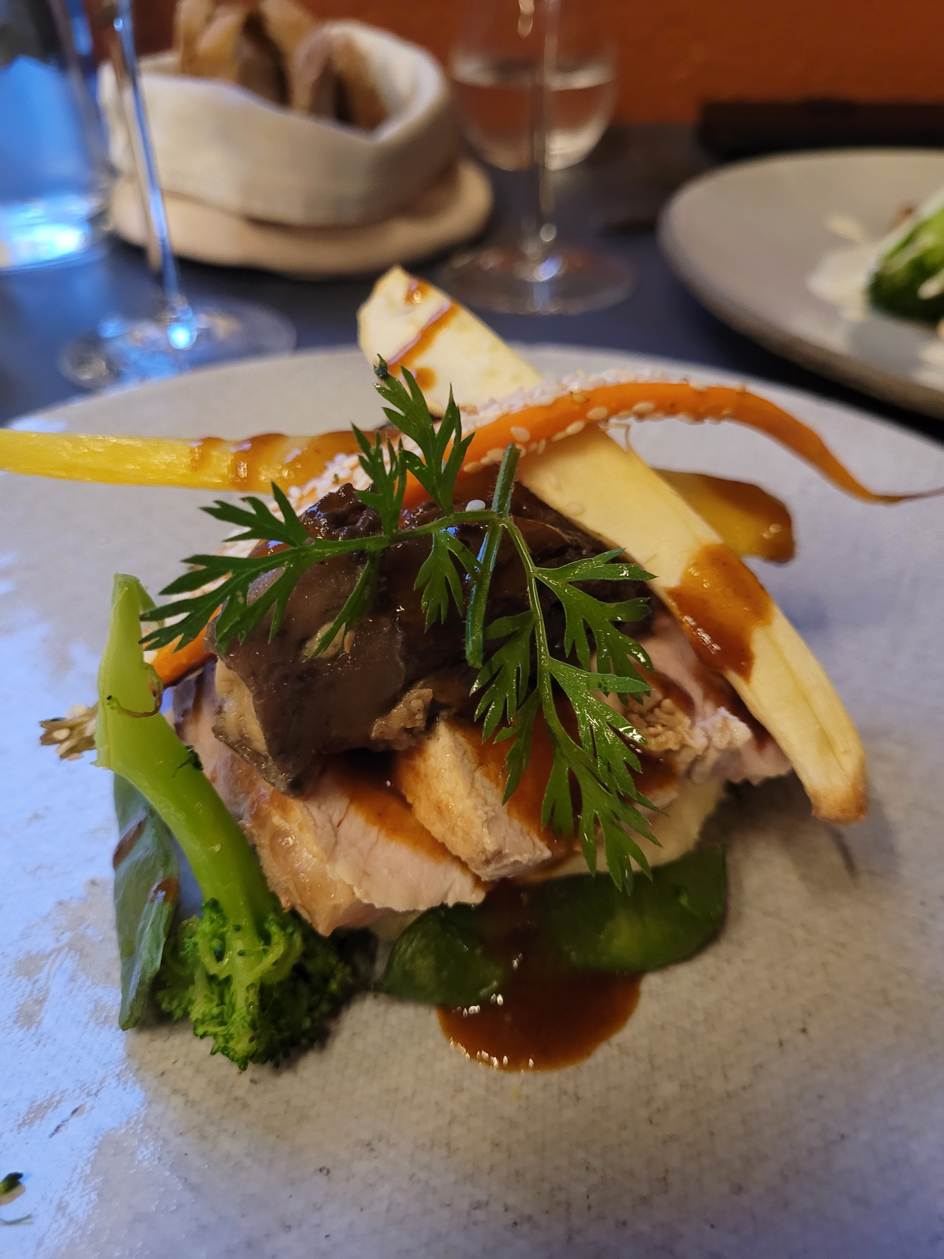 Lieu agréable, service sympathique, très beau dressage des plats mais malheureusement les saveurs attendues ne sont pas au rdv. Des légumes sautés et croquants mais qui n'apportent pas de parfums particuliers manquant d'épices ou d'herbes aromatiques. De même, les sauces ne procurent aucune surprise au palais et l'un des plats était même un peu sec. Les saveurs ne sont pas à la hauteur du dressage. Mais la qualité des ingrédients est irréprochable.
