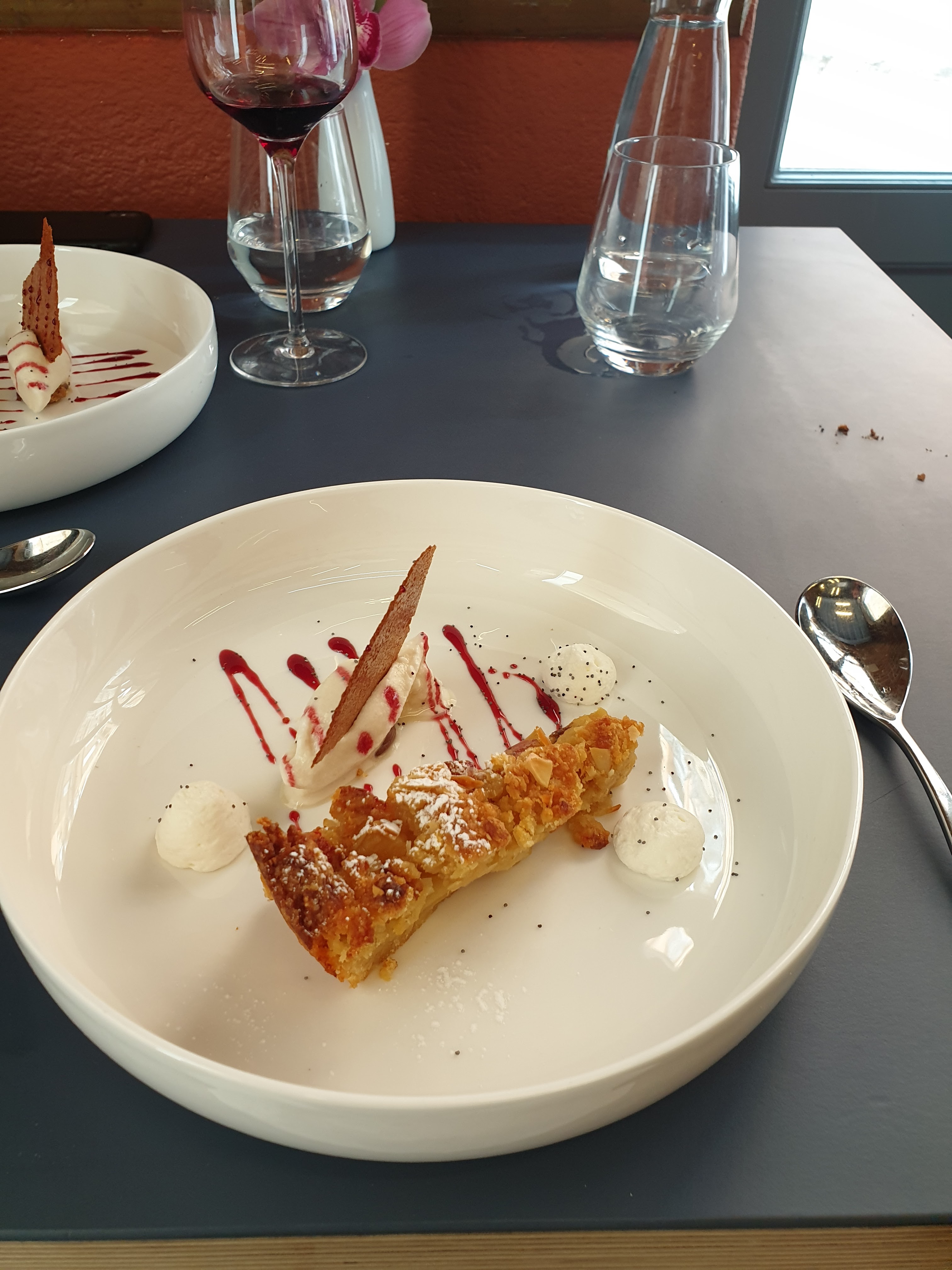Bel accueil merci! Très bonne table, une jolie découverte. De beaux mélanges de saveurs! J’adore être surprise ☺️ de l’œuf parfait au tataki de canard aux liches, du Parmentier de canard avec une association mer un régla! Le pavlova kiwi / menthe une belle révélation (juste déçue par le pavé breton). Un joli vin en accord ☺️☺️