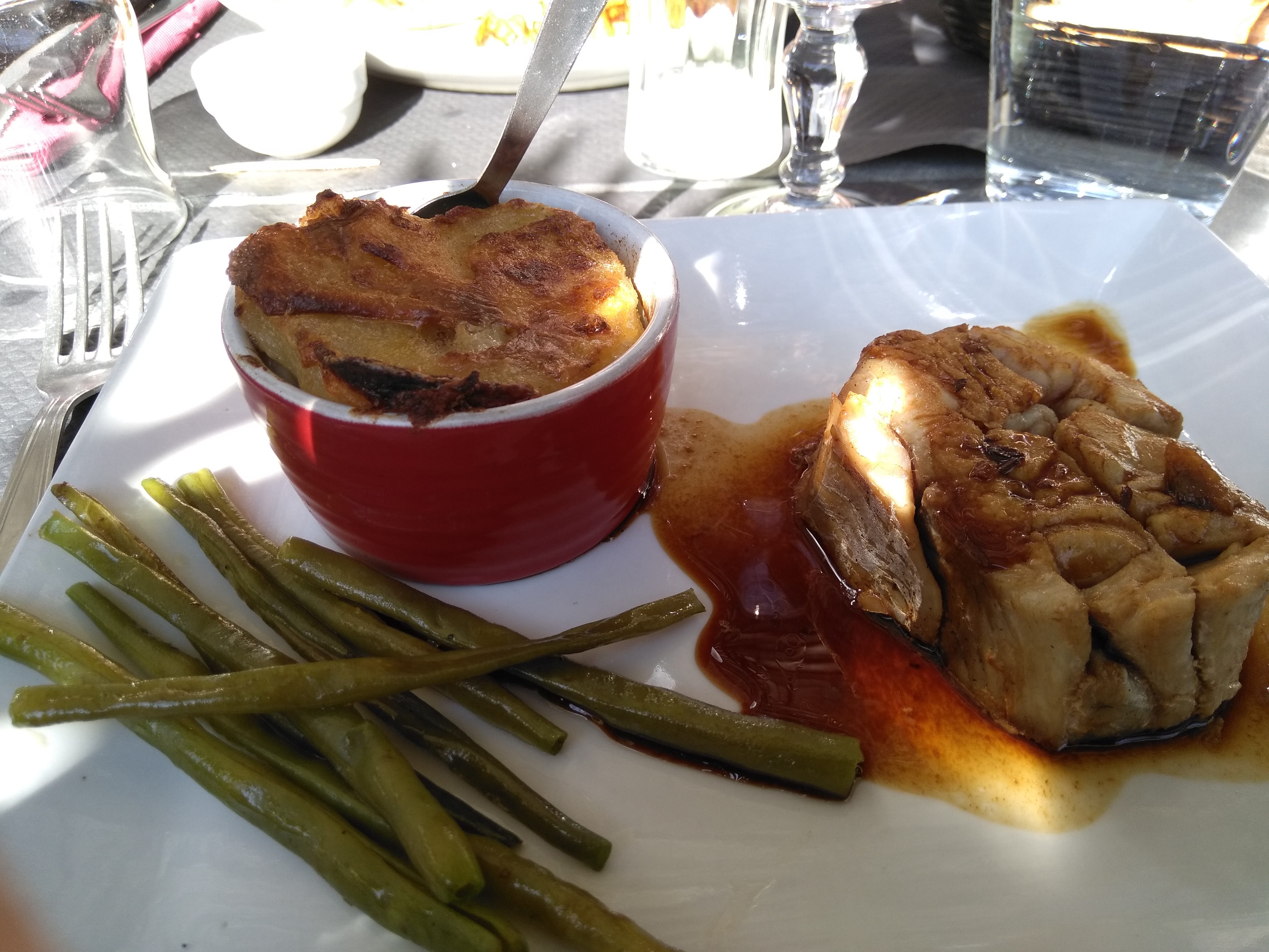 Super accueil. La brochette de boeuf était très bonne et cuite comme j avais demandé. Le gratin dauphinois était aussi très bon. Et j ai adoré le fondant aux marrons. Terrasse agréable. Je recommande.