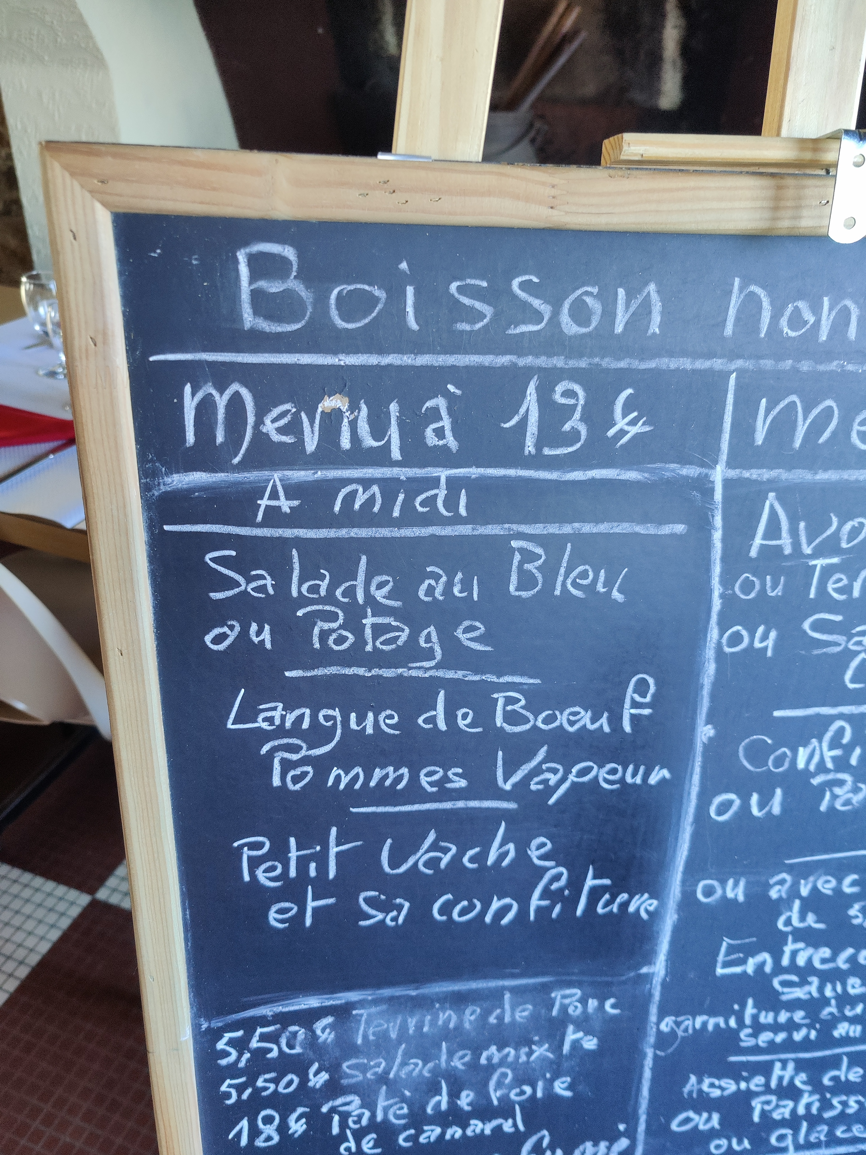 Trouvé, par hasard. Super qualité, entrée, plat, dessert pour 13,50. La qualite de la viande limousine et le dessert faiselle à la confiture maison banane orange un Régal. Personnel, sympathique et à l'écoute Merci