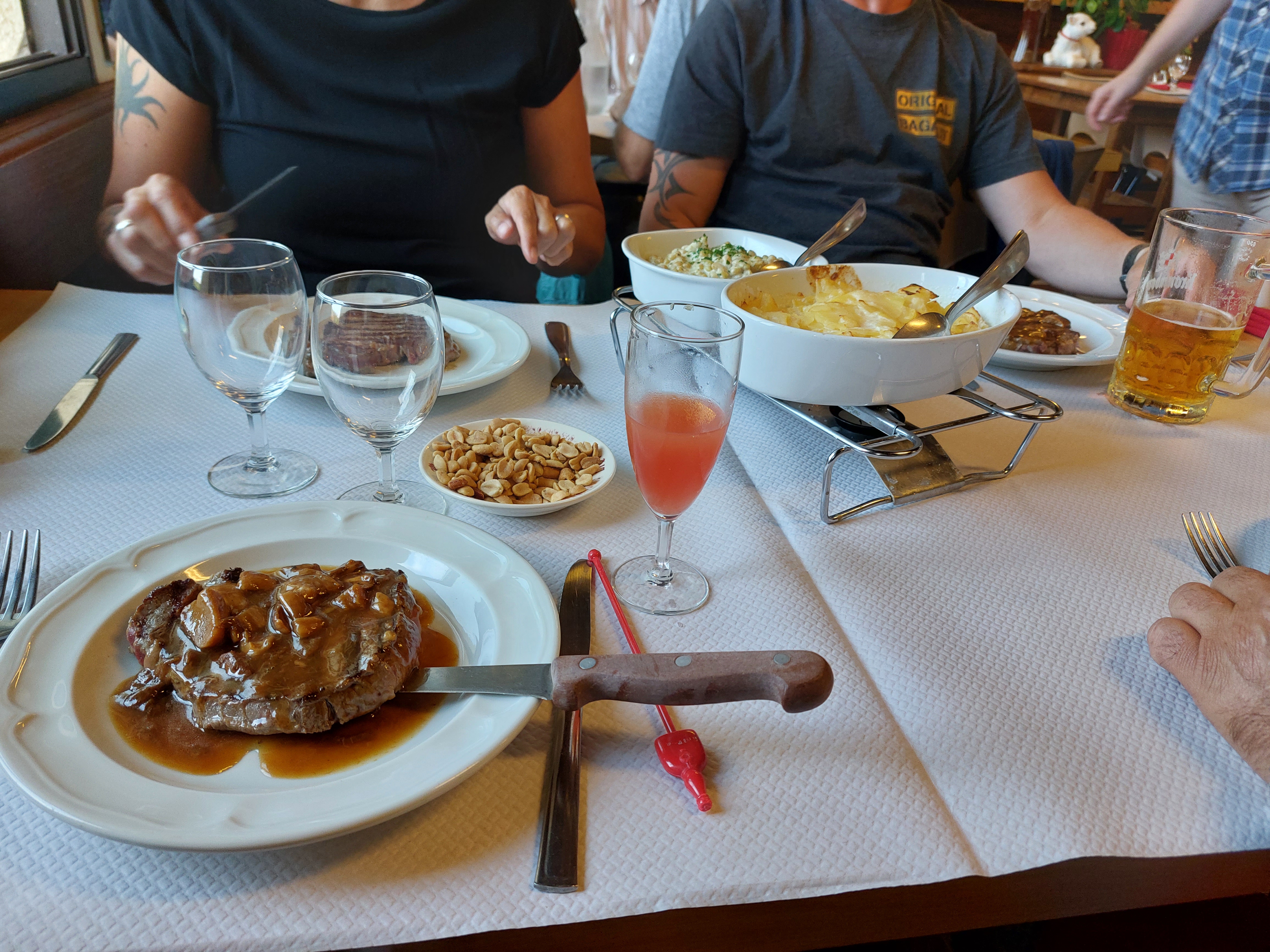 La note n'est pas pour la qualité du repas même si 3,60 euro les 25cl de 1664 ça fait cher mais bon. C'est plutôt pour l'amabilité du patron pas très joviale et pas commerçant. Demande d'avoir que plat dessert pour le menu car fromage de tête en entrée pour une fille de 12 ans c'est un peu special😬 bref sinon cadre à l'ancienne avec trophée de chasse exposé, pas pour les Anti chasse 😝 note de 77 euro pour 4 🤔🤔 voilà