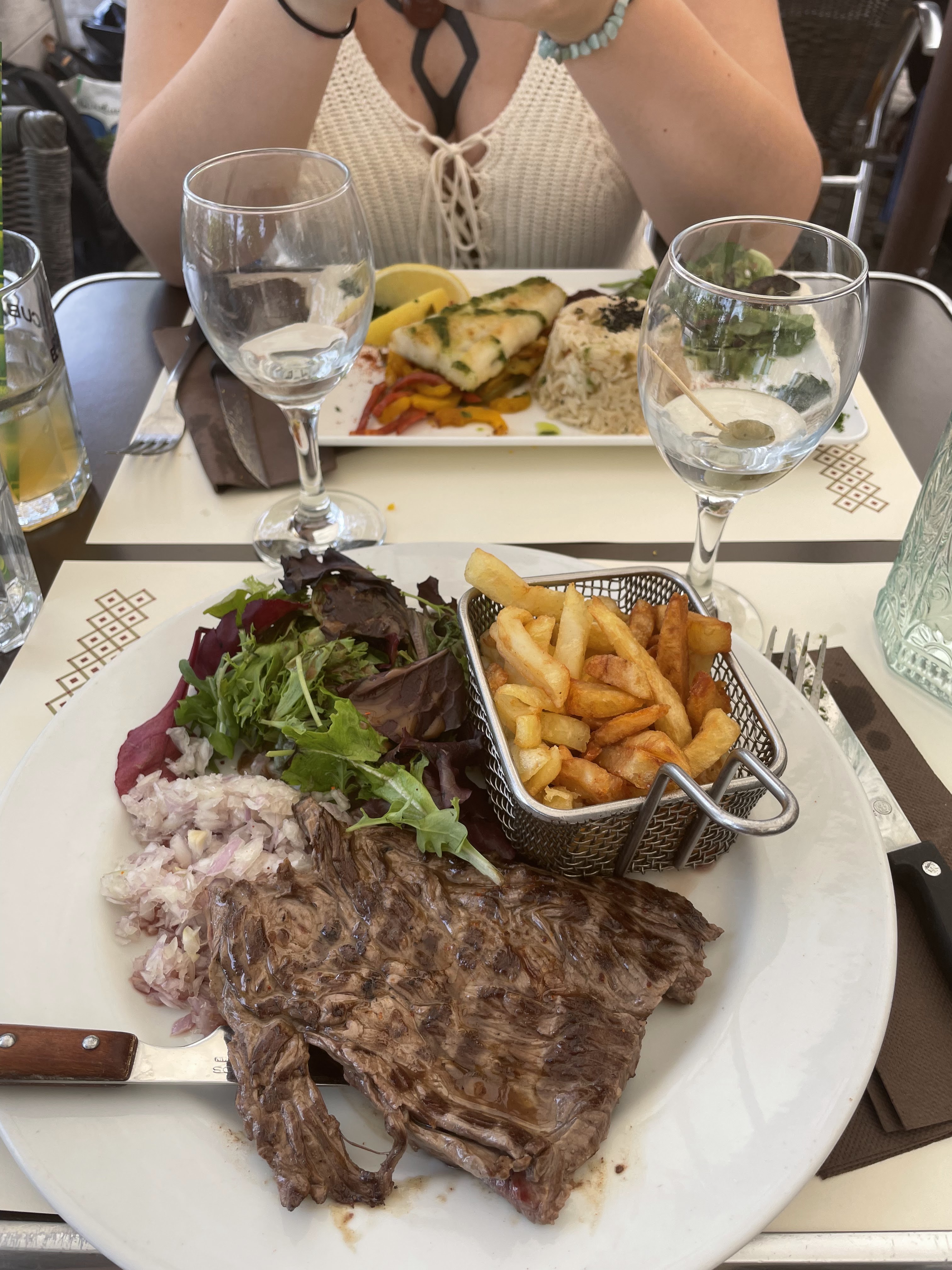 Nous avons dinné. Aperol Spritz était la meilleure chose là-bas. Le steak est horrible. Mon partenaire et moi nous plaignons tous les deux de maux de ventre toute la nuit. Le chef est un échec complet. Je pense que la nourriture servie est vieille, c'est pour ça que c'est arrivé.