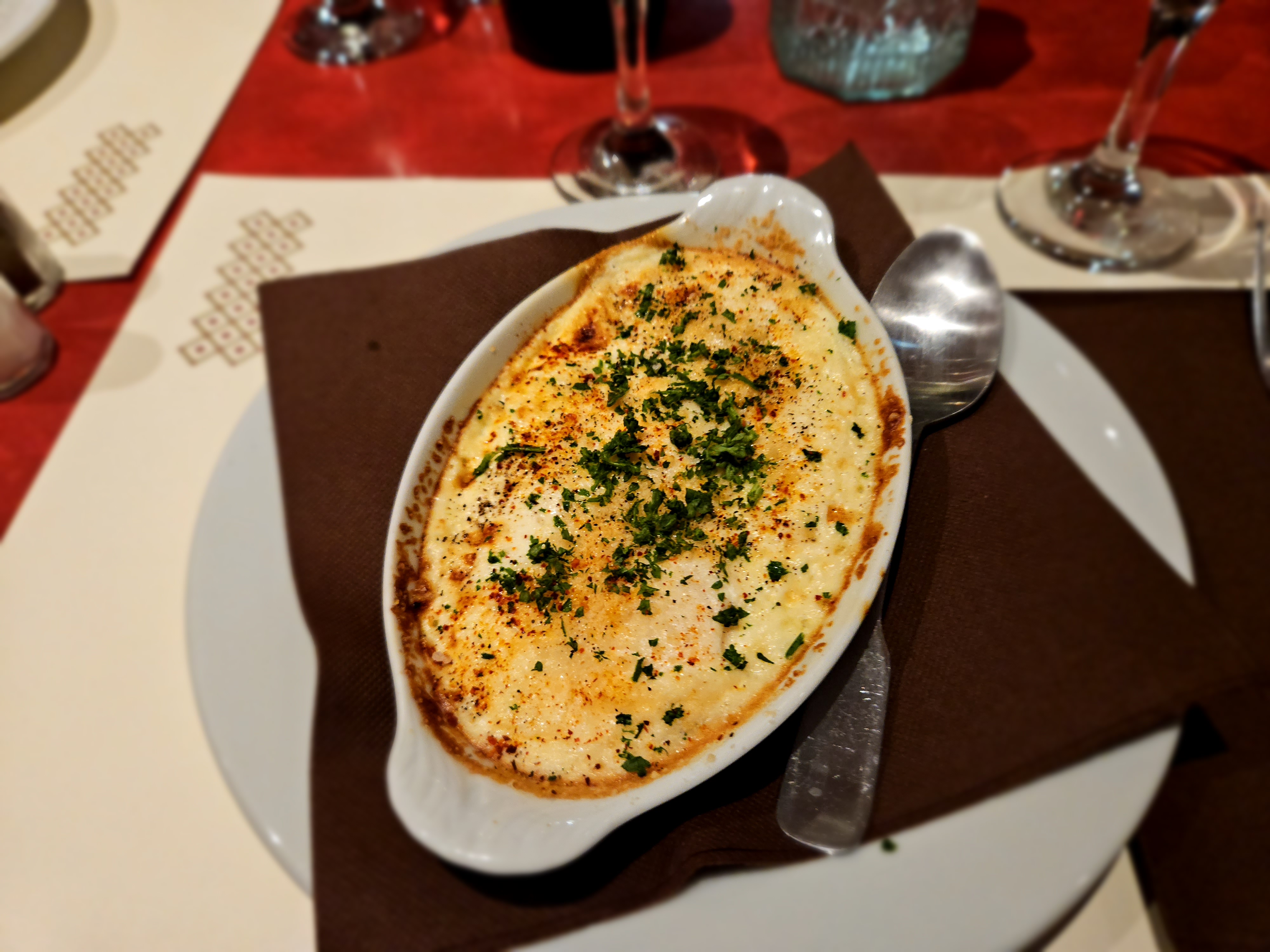 Je me suis arrêtée par hasard, et ils proposent une offre assez interessante avec un bon rapport qualité prix! 23€ l’entrée + plat + dessert, c’est copieux, le service est agréable et les serveurs a l’écoute! un peu d’attente entre l’entrée et le plat mais c’est vite oublié !