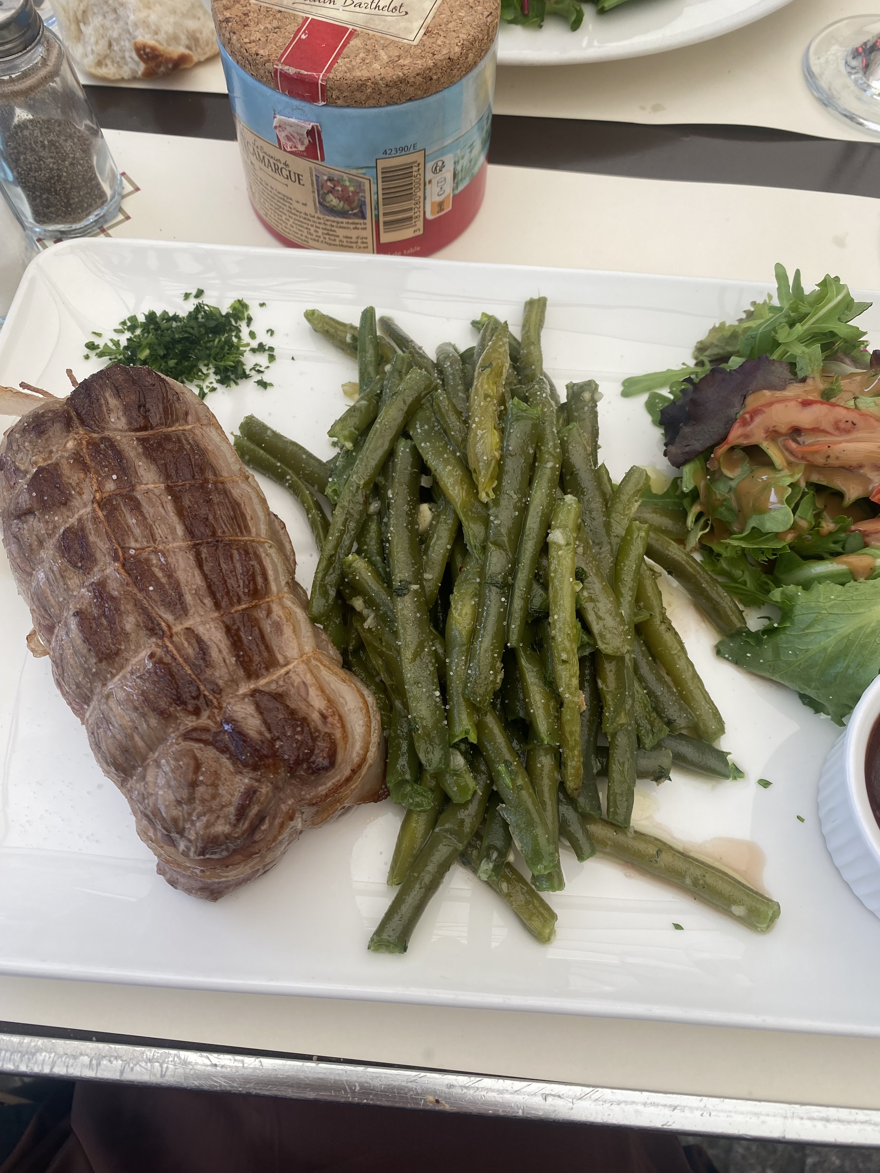 J'aime l'entrée et le plat principal qui étaient du carpaccio et du bœuf. Ce n'était pas comme une cuisine française en petite quantité. La qualité et la quantité étaient bonnes.
