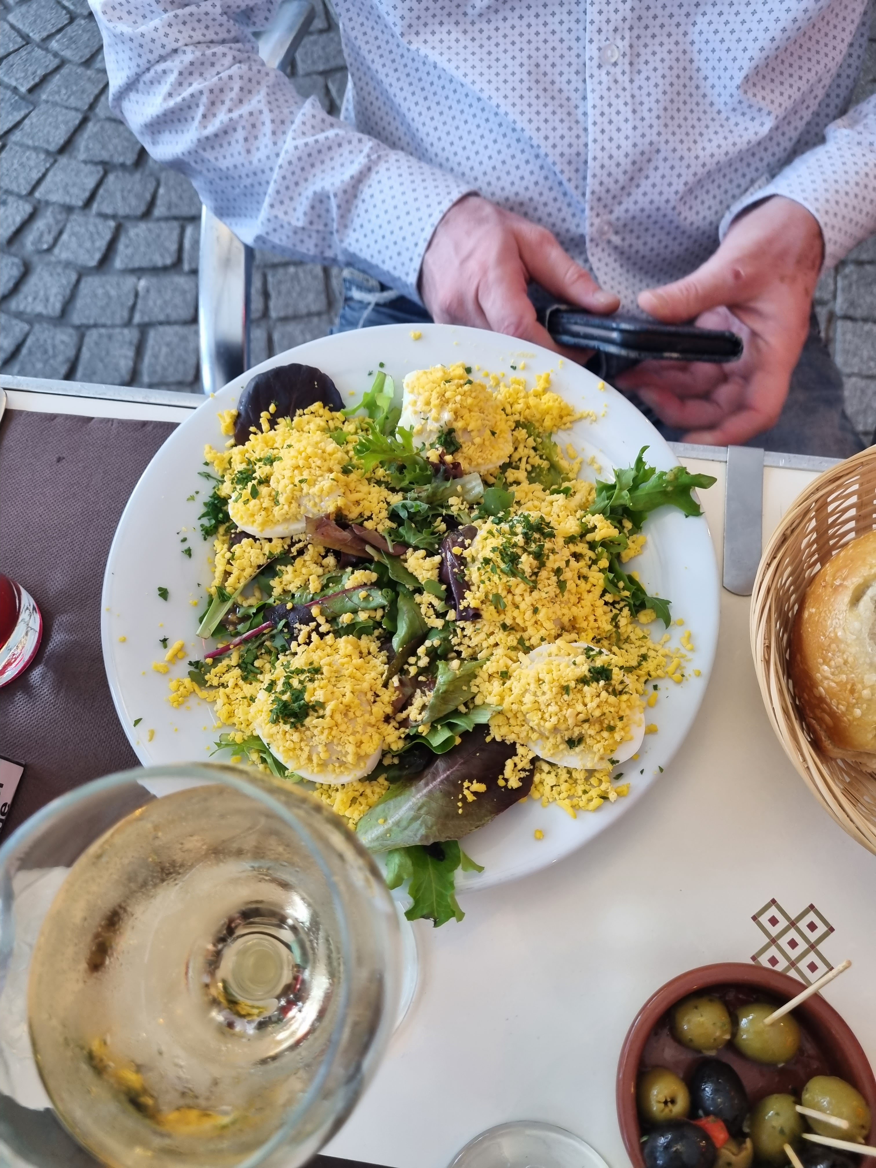 Nous avons apprécié un délicieux repas avec des amis au Plana sur leur belle terrasse. Chaque plat était délicieux avec des échantillons qui se passaient fréquemment. Nous vous recommandons vivement la galette de Plana avec du saumon fumé, des pommes de terre, un mélange de laitue épicée généreusement recouvert d’une sauce à la ciboulette légère et crémeuse et le toujours ridiculement riche et beau mimosa Oeufs. (Juste ne les appelez pas « oeufs à la diable ».) Le service était également charmant. L’invitation à s’attarder sur la crème du café était très appréciée. We enjoyed a delightful meal with friends at Le Plana on their lovely terrace. Each dish was delicious with samples frequently being passed back-and-forth. Highly recommend thé galette du Plana with smoked salmon, potatoes, a spicy lettuce mix generously blanketed by a light and creamy chive sauce and the always ridiculously rich and beautiful Oeufs mimosa. (Just don’t call them “deviled eggs”.) The service was charming, as well. The invitation to linger over café crème was much appreciated.