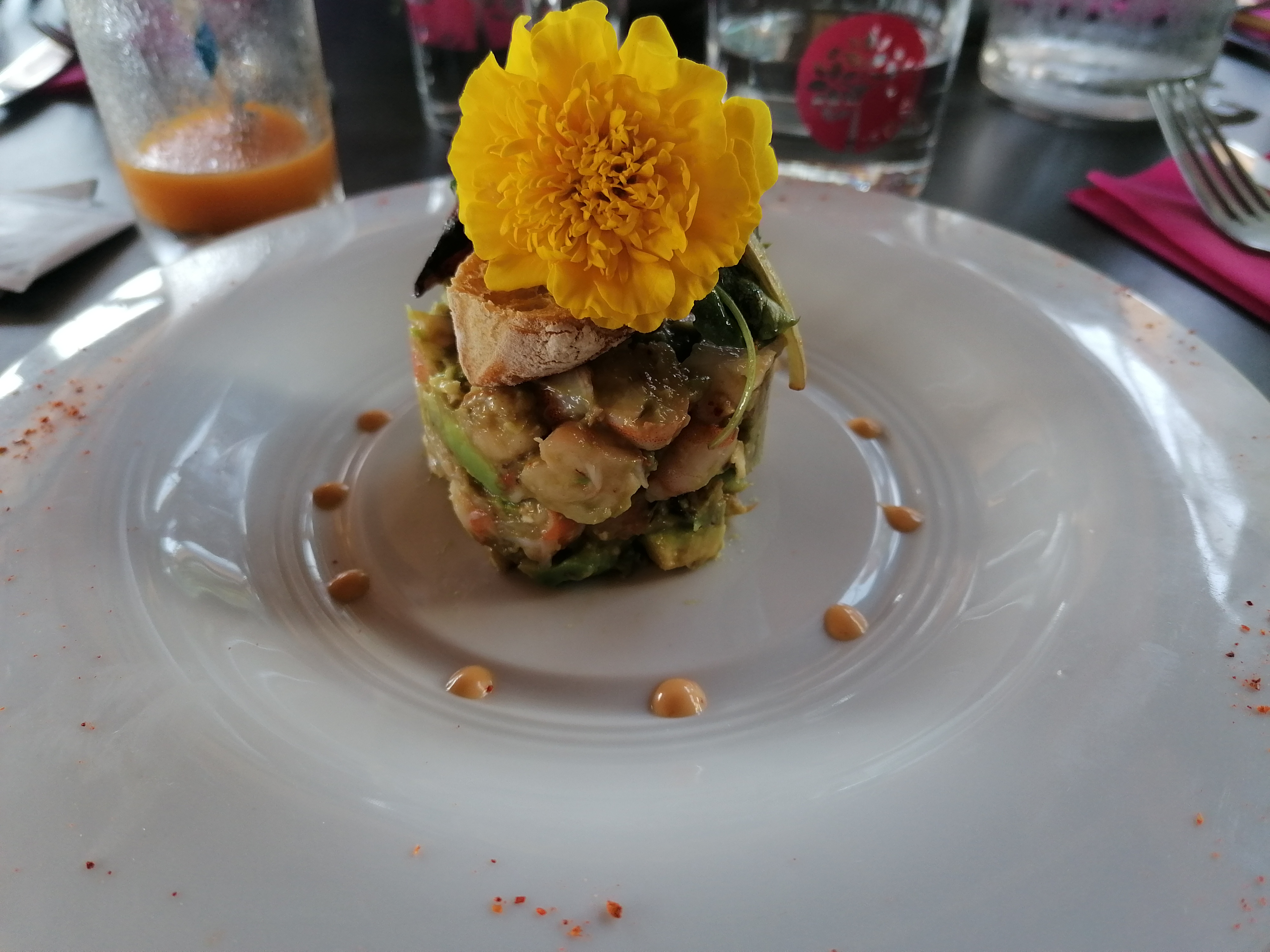 Magnifique vue et cadre hyper sympa.. Les différents plats ont été apprécié par l ensemble de nos amis .Le tout accompagné par un entre deux mers vin frais à point et fruité qui peut se déguster dès l apéro. La soupe de fraises à été un délice de fraîcheur car il faisait très chaud ce jour là ..le service est hyper agréable et disponible . Félicitations et n'hésitez pas ,je vous conseille d'y aller