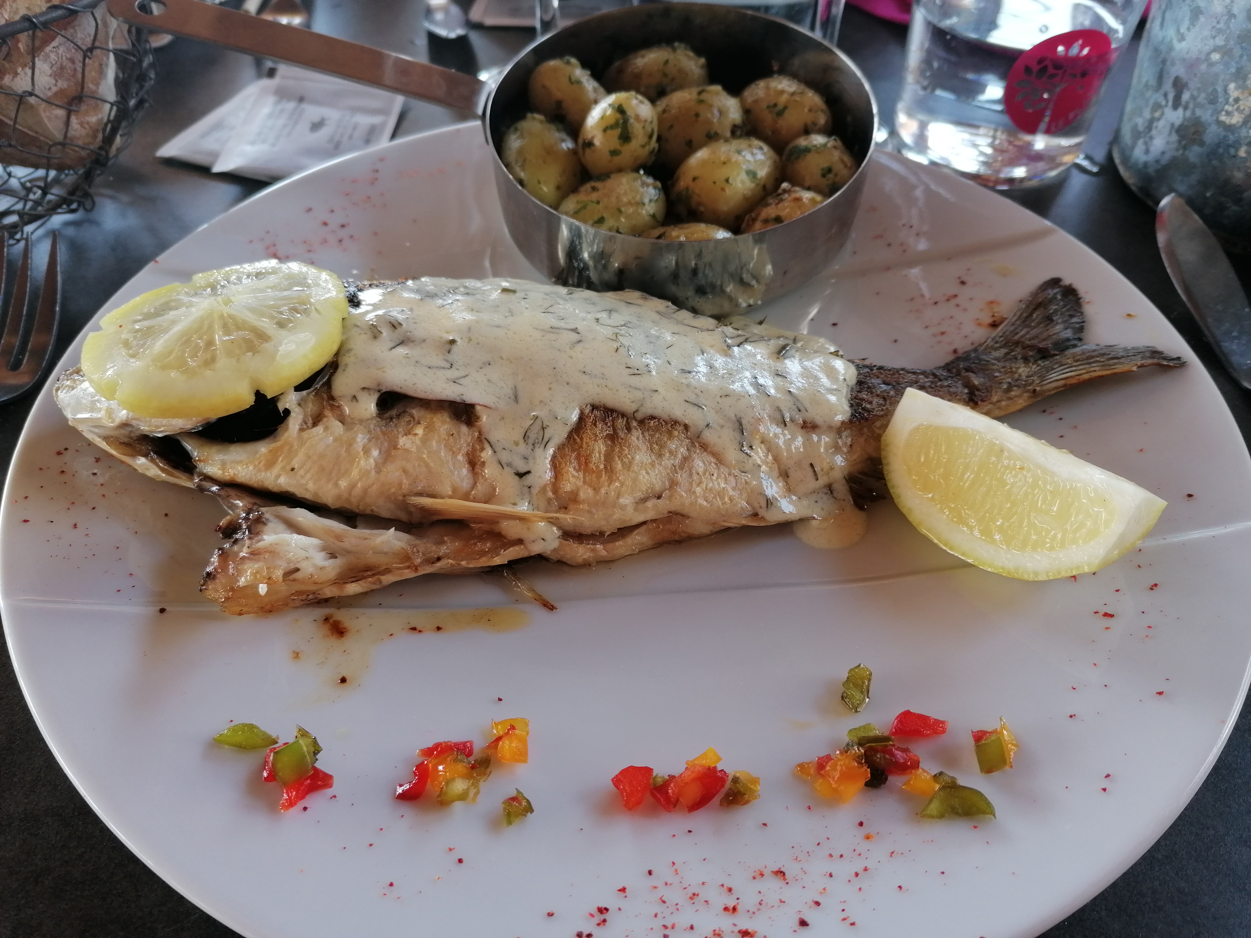Le cadre et le service, très agréable. Dommage que l'accompagnement un peu juste ne soit pas terrible, chips de frites plutôt trop fines pour ne pas être trop grasses, sans un petit légume à coté, juste un peu... La daurade de mon ami était bonne, mais le plat un peu léger pour un bon appétit. Pour nous , le rapport qualité prix était plutôt ... salée