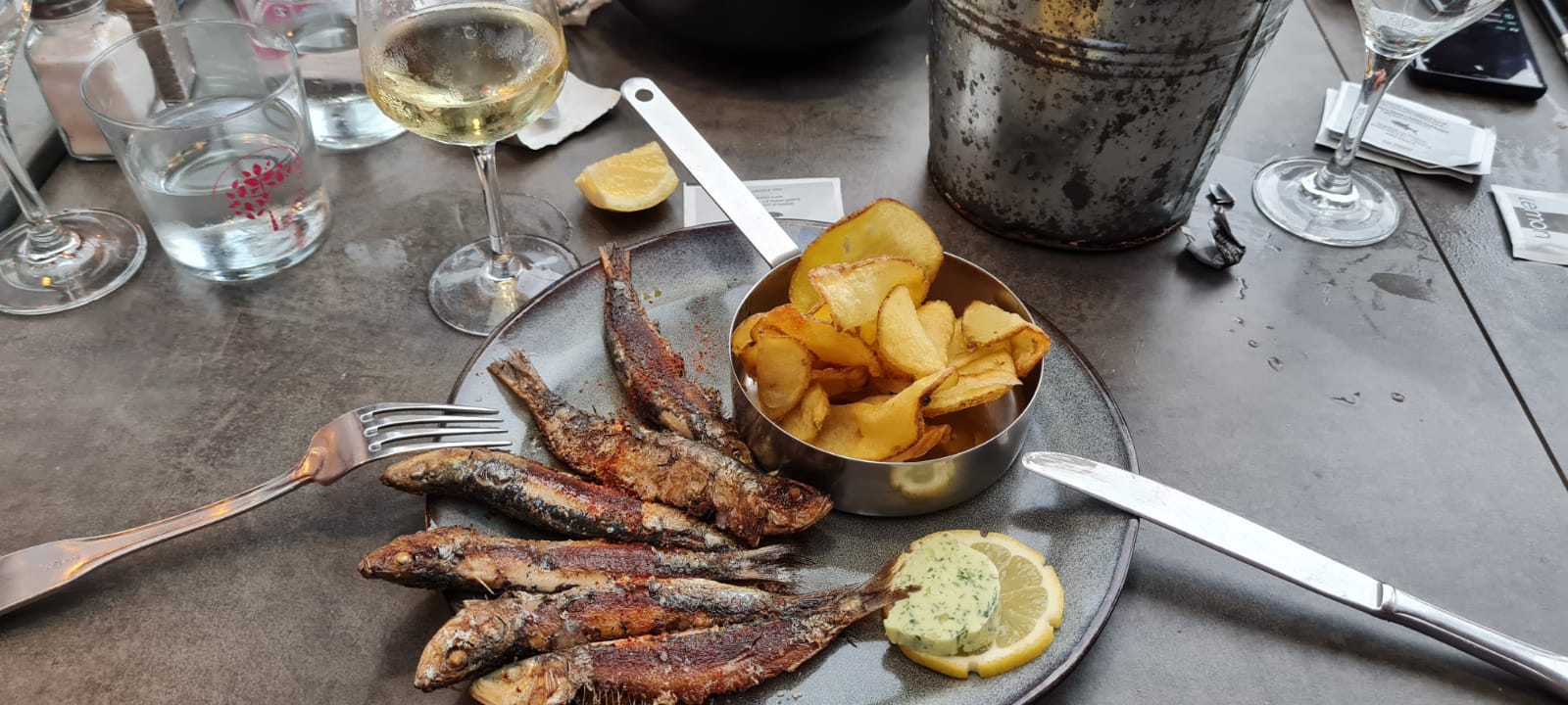 Excellent dîner en famille dans ce petit restaurant : Entrées originales : tataki de thon rouge, tartare de poisson, terrine de foie avec chutney de mangue, Plats délicieux et copieux :sardines grillées, entrecôte énorme (350 g), pâtes à l encre de seiche et gambas, Bons desserts pour les gourmands :crèmes brûlées , café gourmand Il y en a pour tous les goûts marins ou terrestres. Il est préférable de reserver en week-end. Bon appétit.