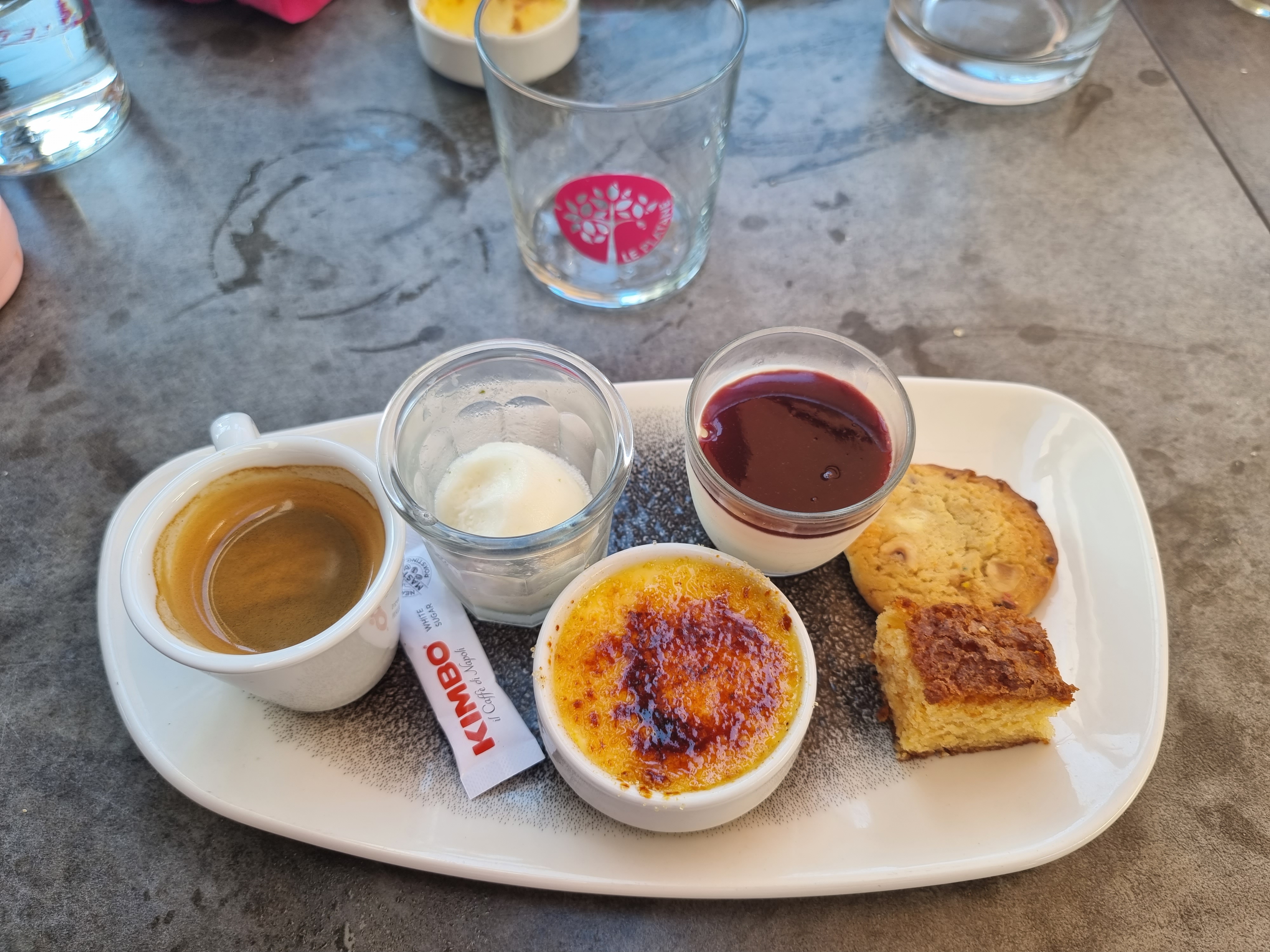 Bien reçus sans réservation. La table sur la terrasse mériterait une nappe car elle est très tachée... Question cuisine, le maigre dans le risotto est vraiment sec... et maigre, par contre, très bonnes coquilles st jacques. Bon point pour le café gourmand